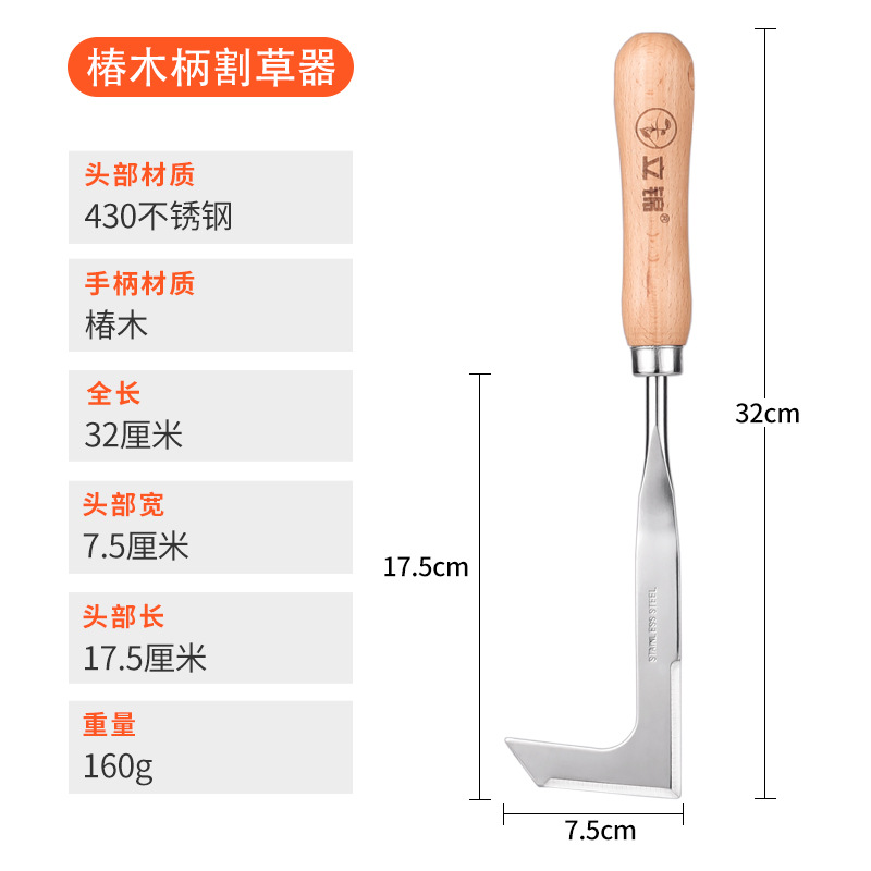 立锦椿木柄不锈钢割草刀镰刀除路面缝隙杂草器园艺园林工具L-K8