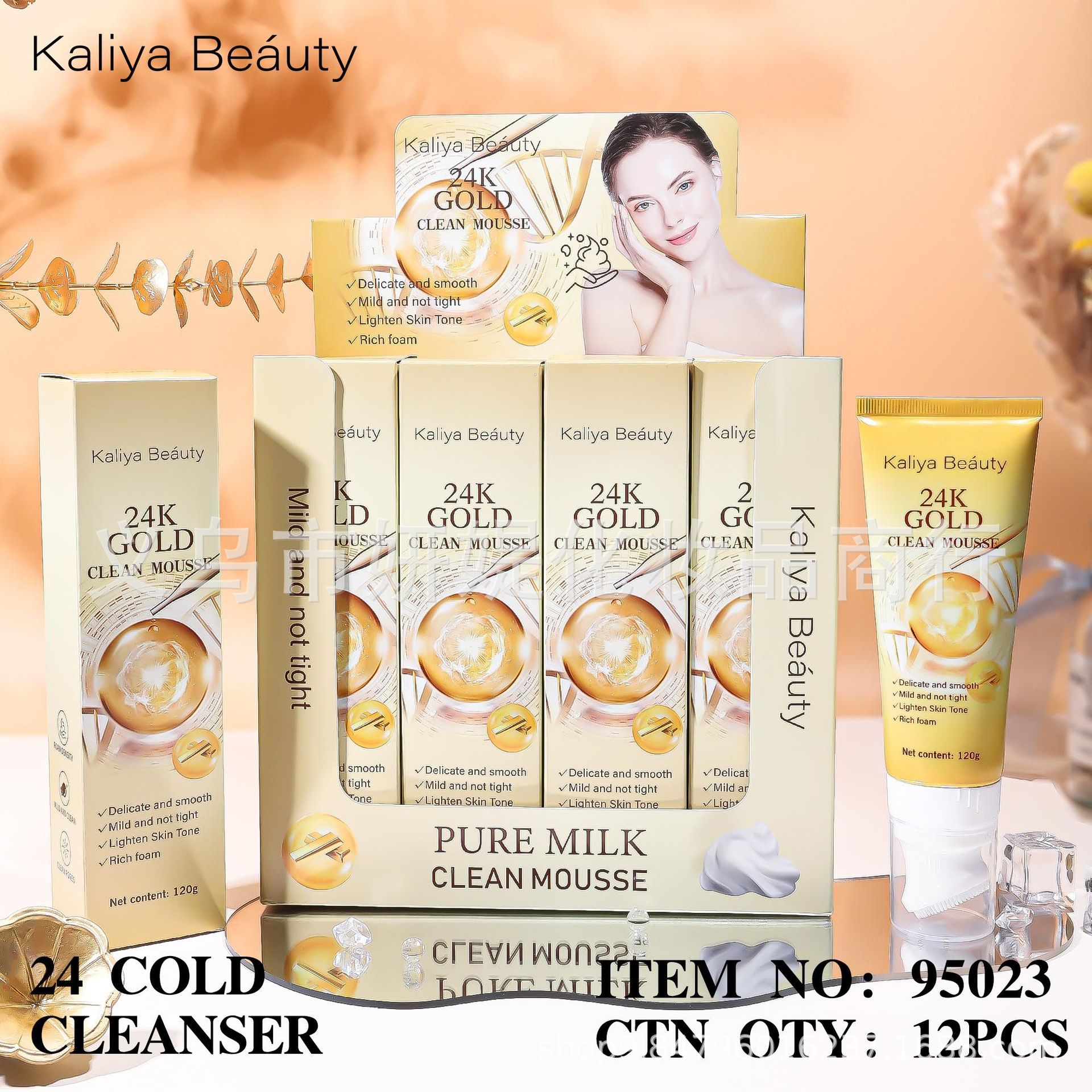 跨境新品Kaliya Beauty24K玻尿酸玫瑰洁面乳温和不刺激洗面奶批发