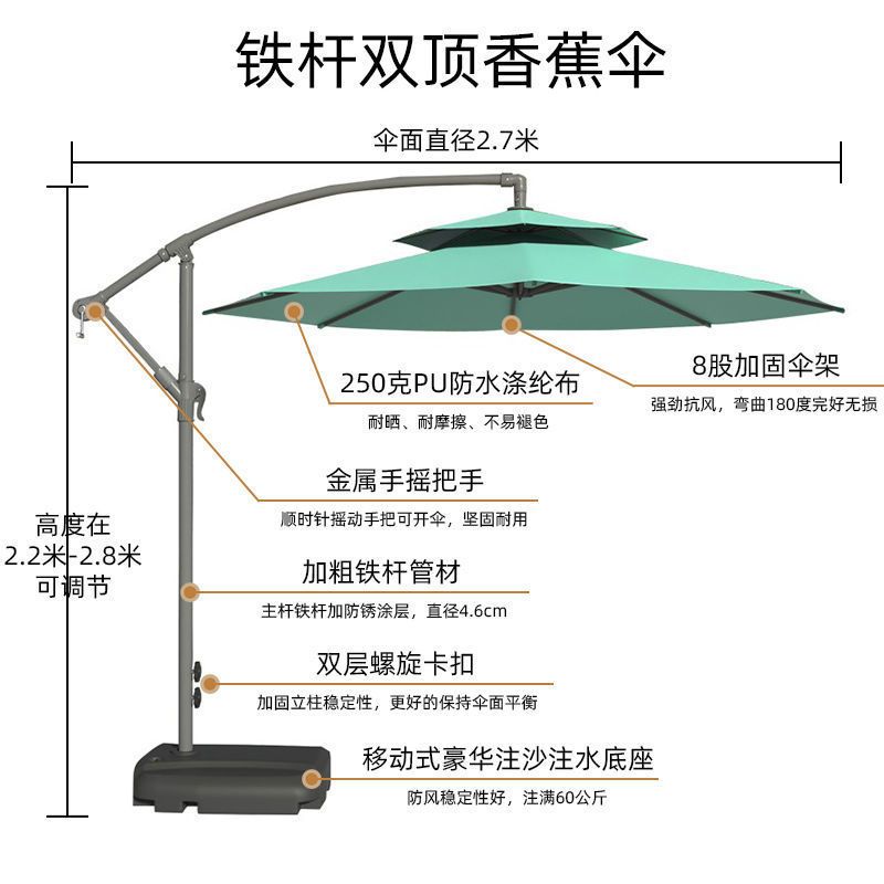 | 双顶墨绿色香蕉伞 送120斤水箱 | ¥31161 | 99999件可售 |
