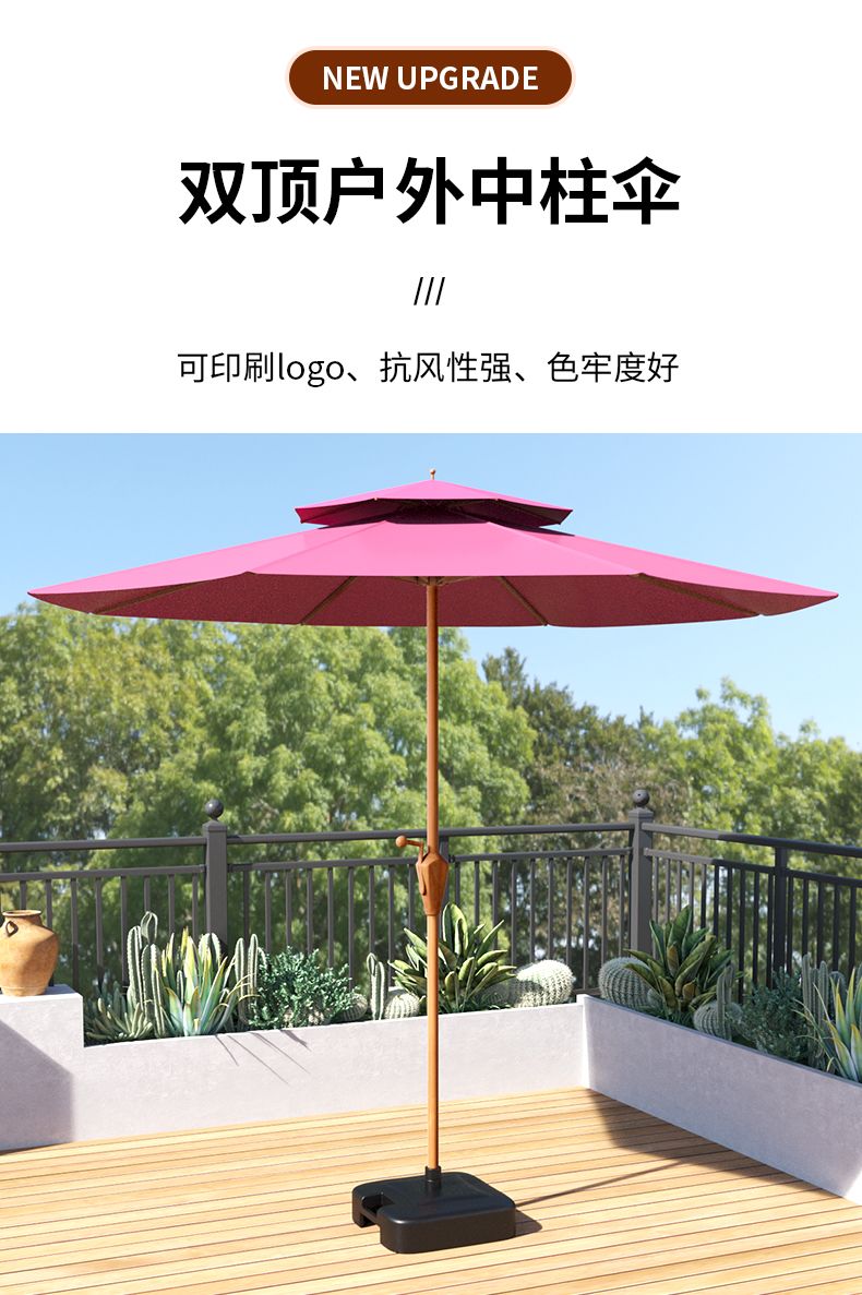 | 大红色--(遮阳防雨)-双顶中柱伞 | ¥33818 | 99999件可售 |