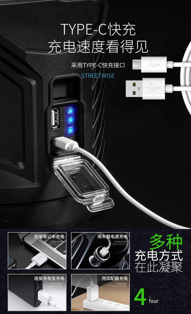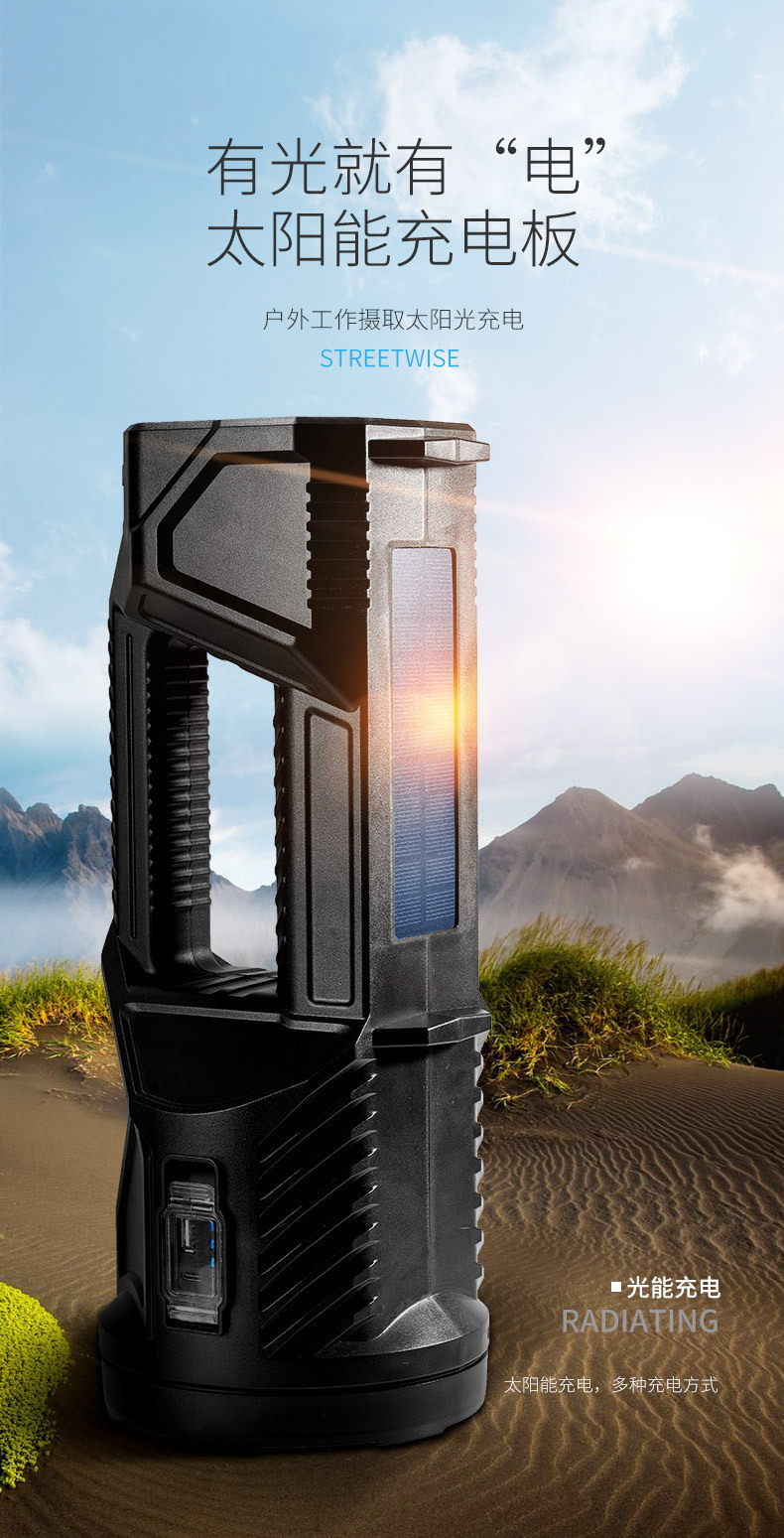 太阳能充电、电量显示、Type-C接口、USB输出