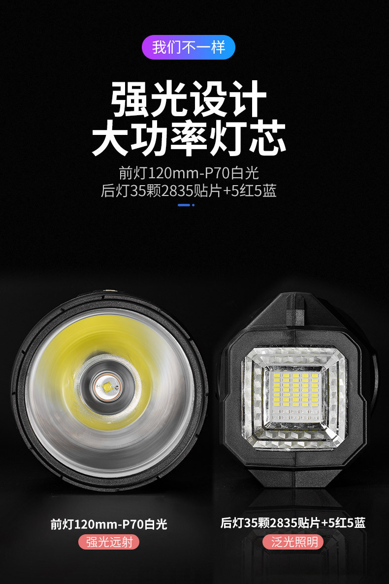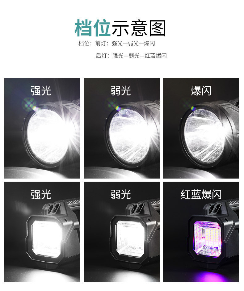 尾灯黄光强 500Lm,前灯黄光弱 150Lm