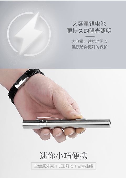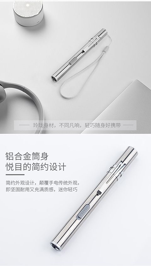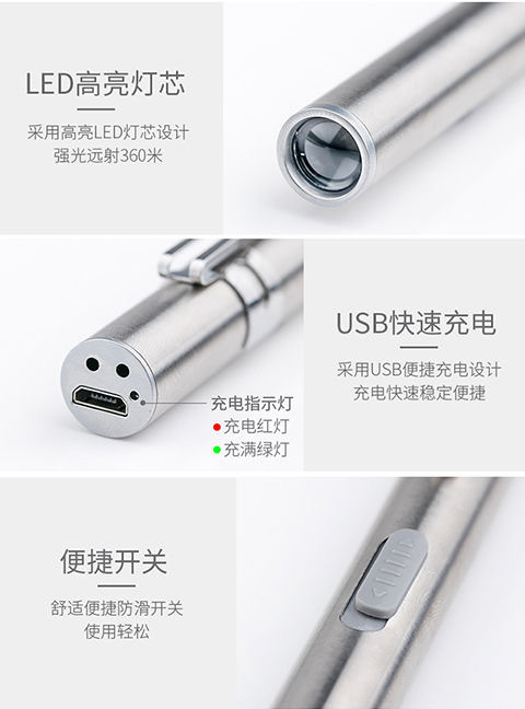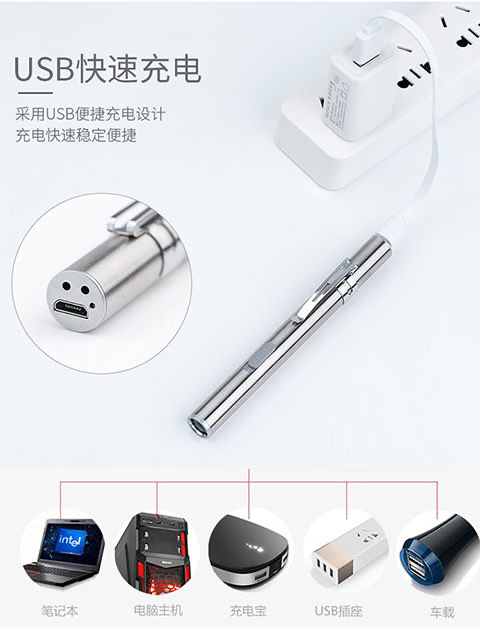 充电迷你小型手持手电瞳孔笔耳鼻喉检查医护不锈钢户外照明手电