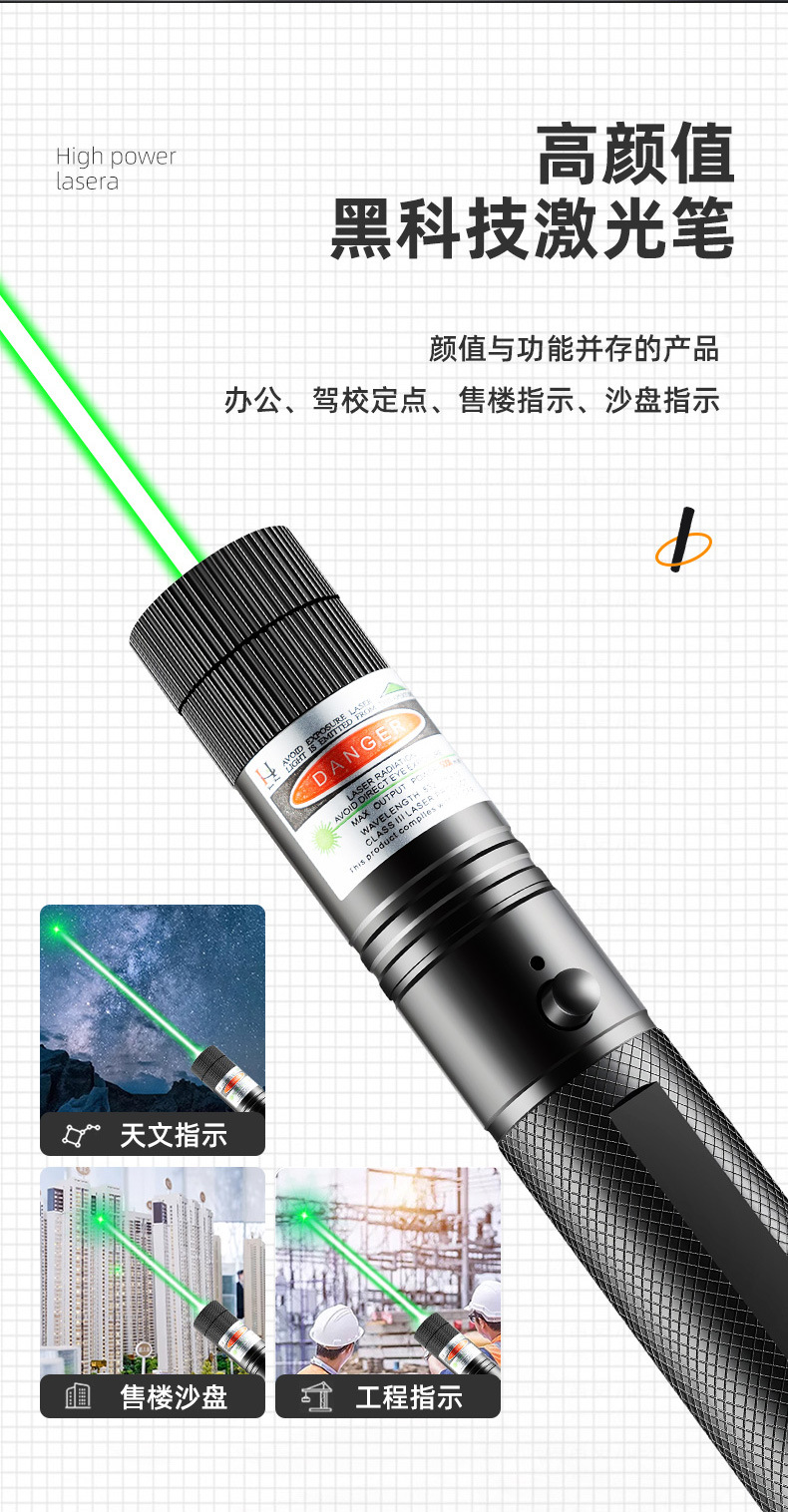 跨境批发激光手电绿光强光大功率镭射灯售楼沙盘射笔驾校指示用品