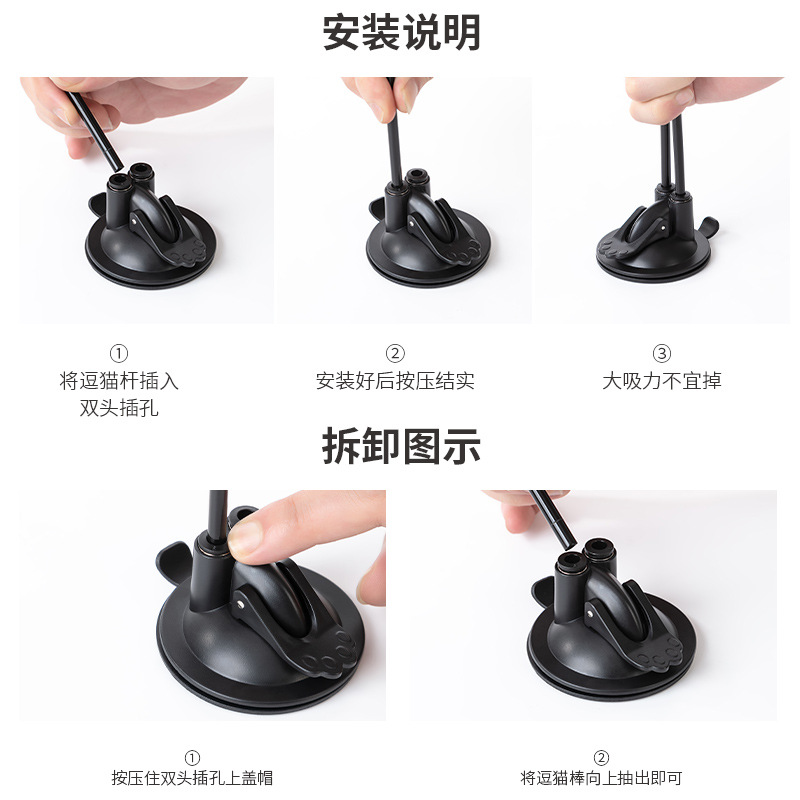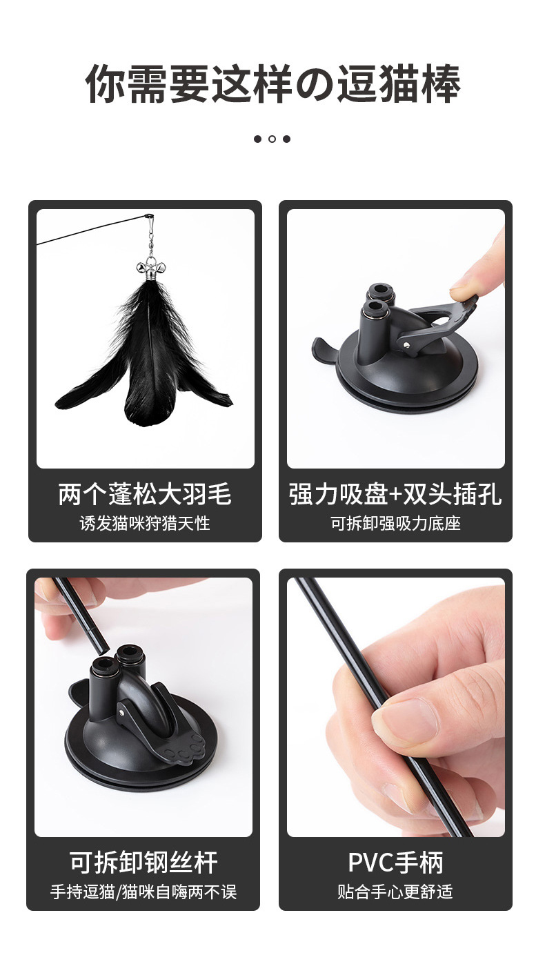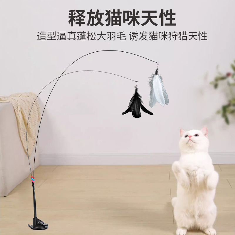 新款直销升级超吸底胶双头双杆可手持羽毛棒猫咪玩具新款懒人逗猫