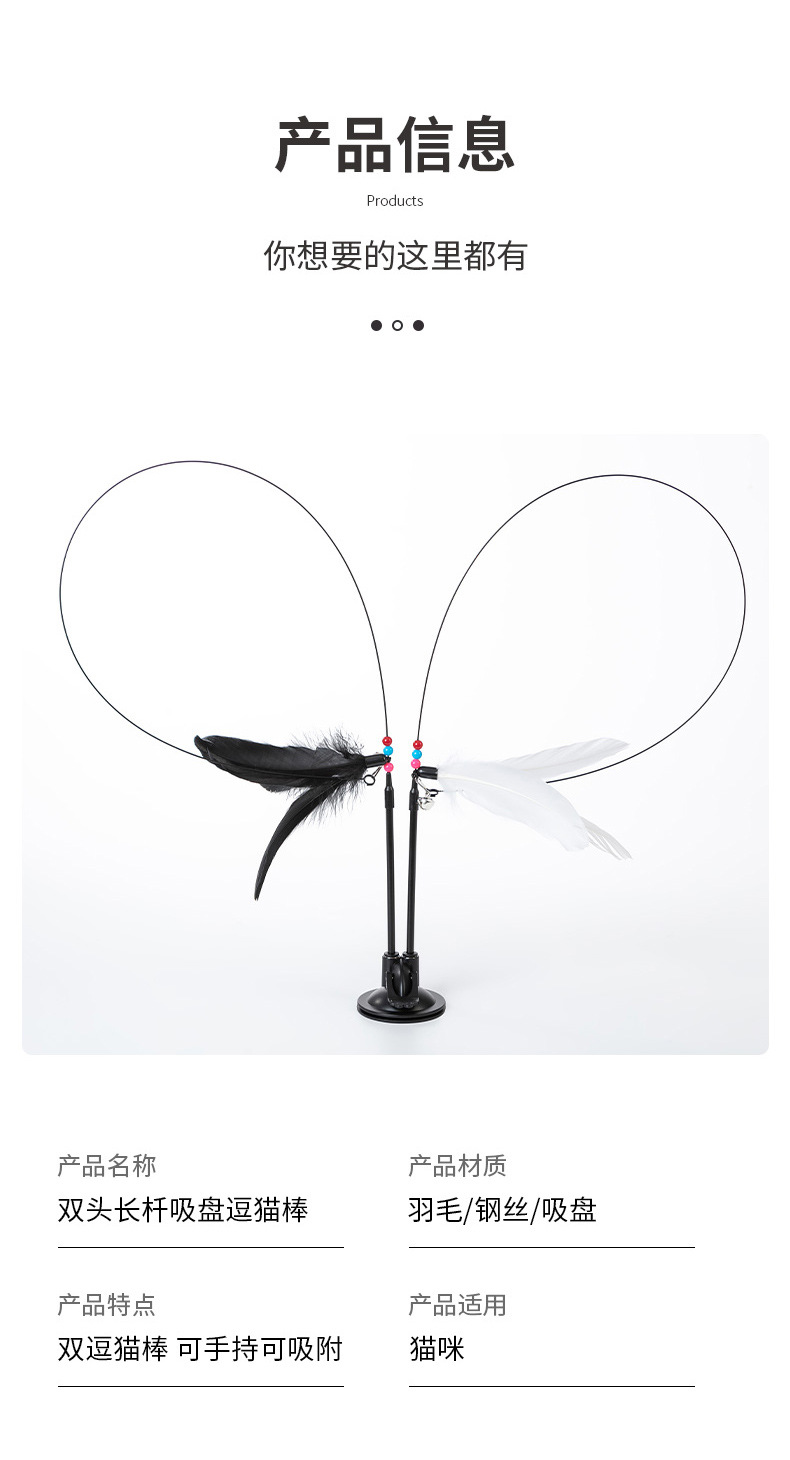 新款直销升级超吸底胶双头双杆可手持羽毛棒猫咪玩具新款懒人逗猫 投诉