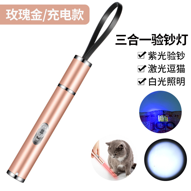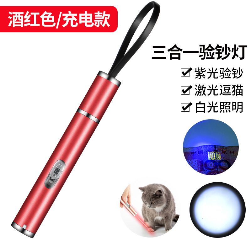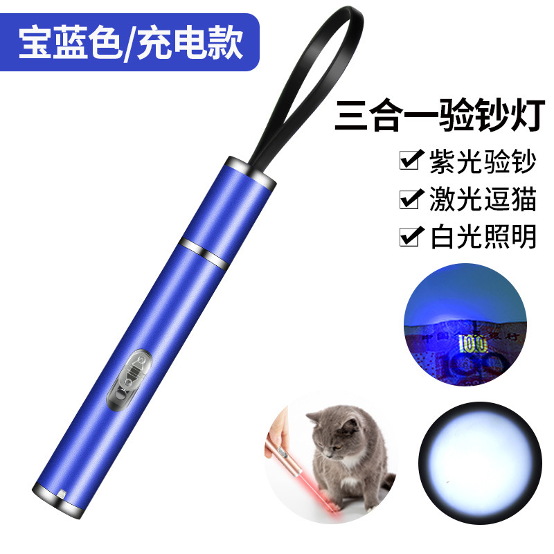 充电激光三合一红外线验钞笔手电筒紫光激光指示笔