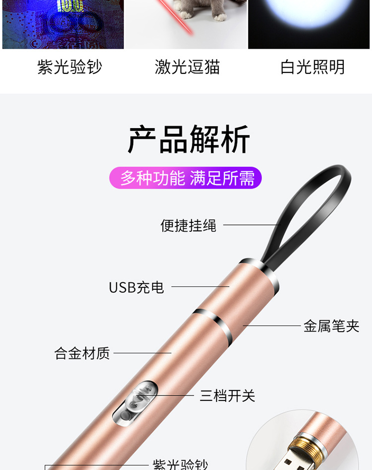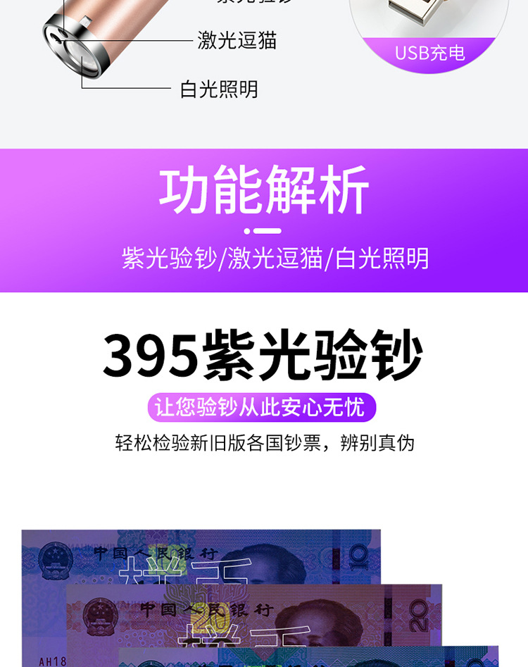 充电激光三合一红外线验钞笔手电筒紫光激光指示笔 投诉