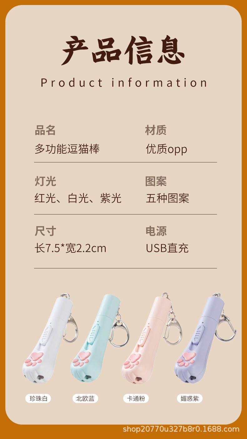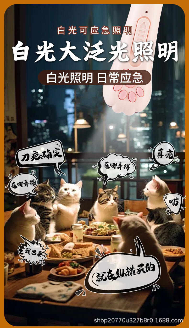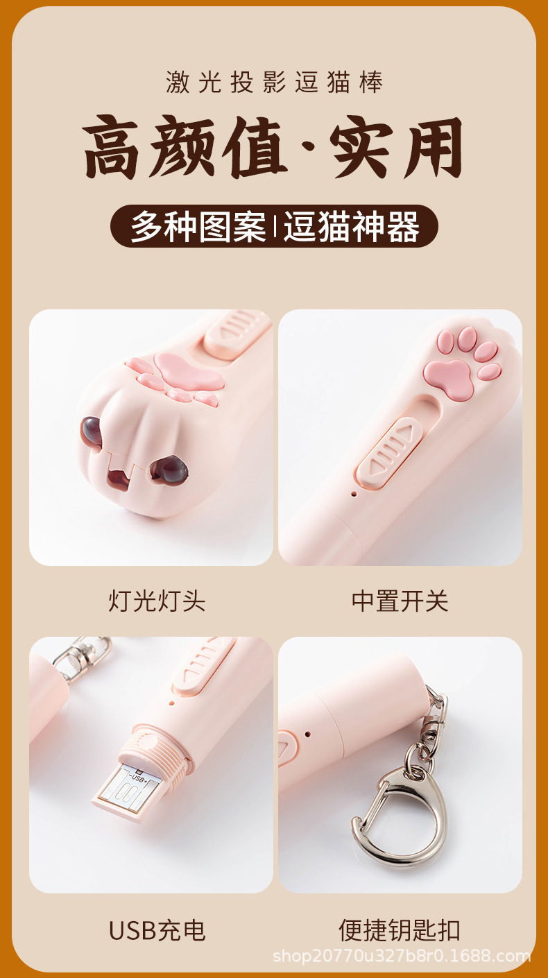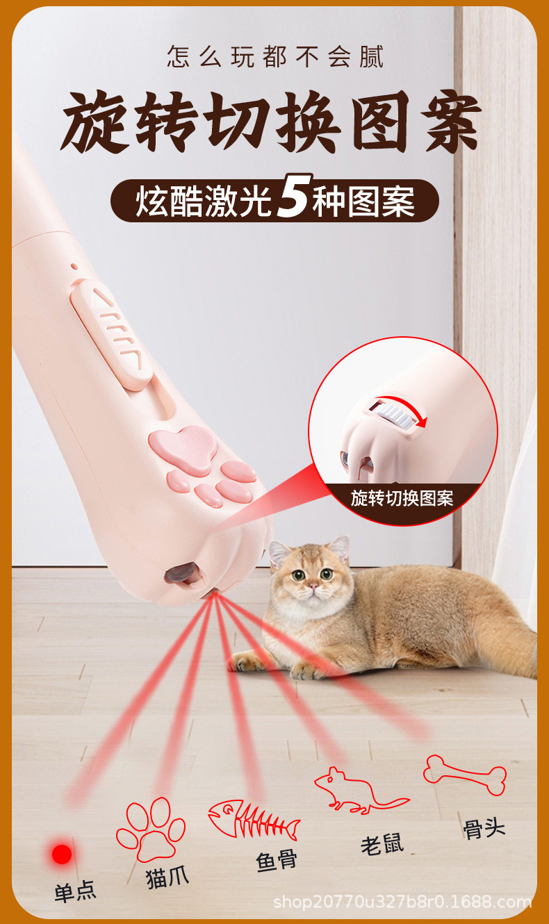 猫爪型逗猫激光笔图案猫玩具解闷充电红外线逗猫验猫藓激光逗猫棒 投诉