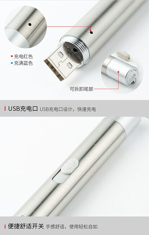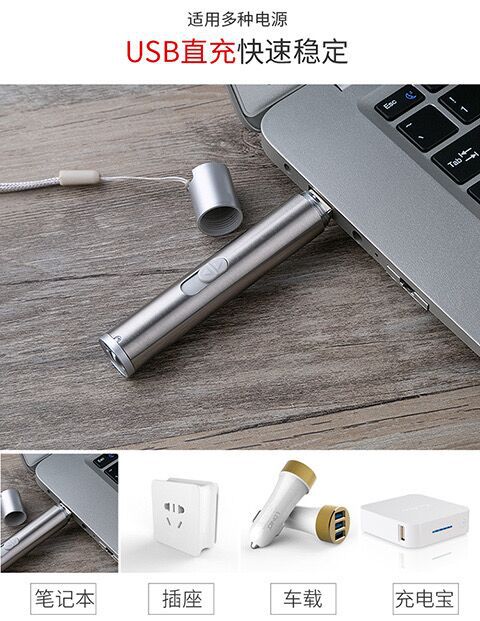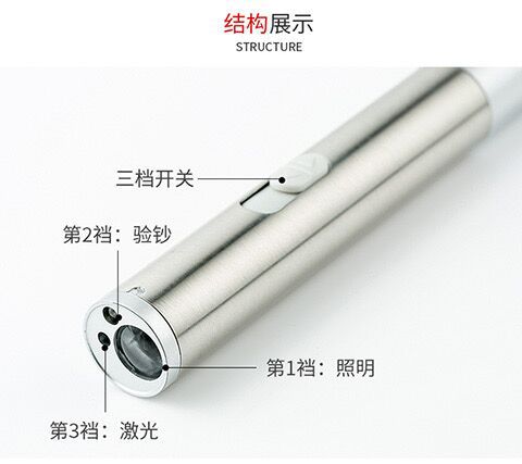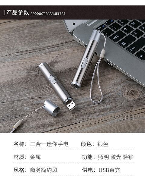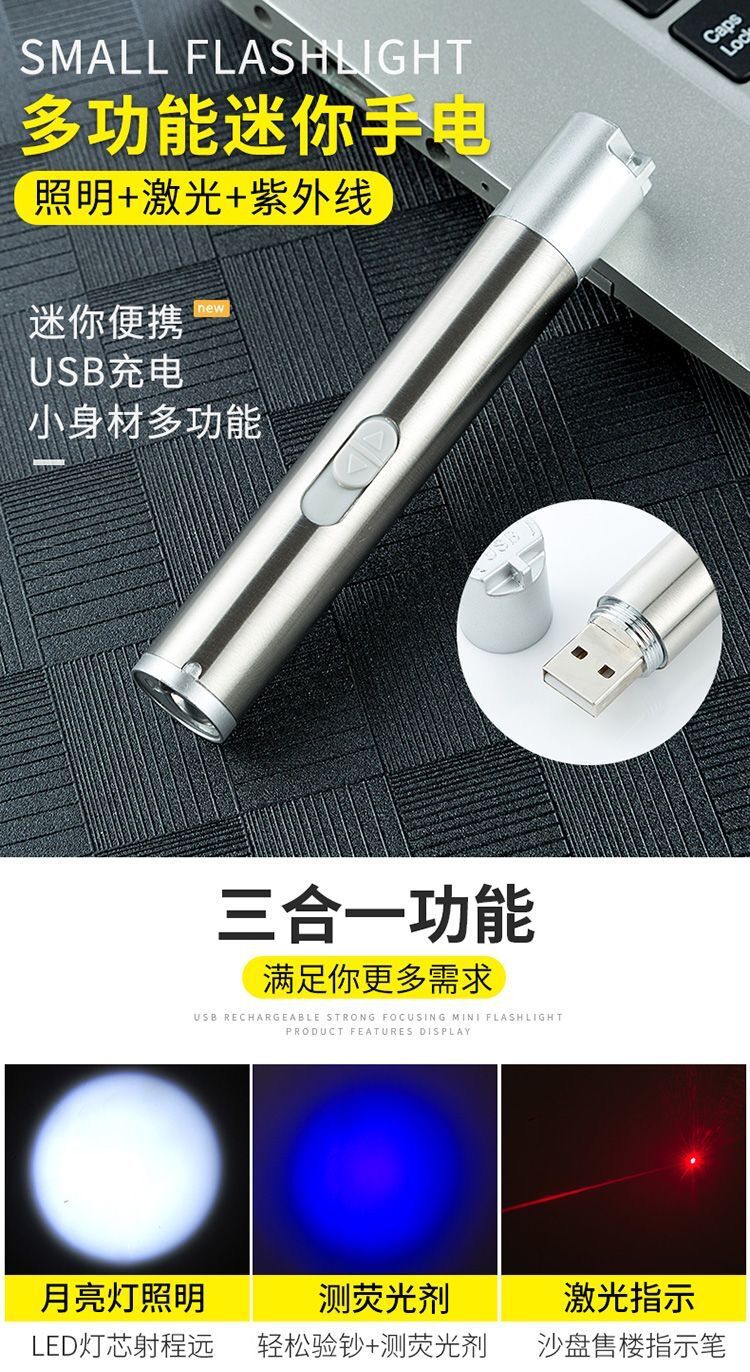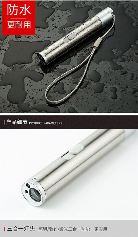 强光充电手电激光红外线照明验钞三合一多功能LED手电筒逗猫玩具