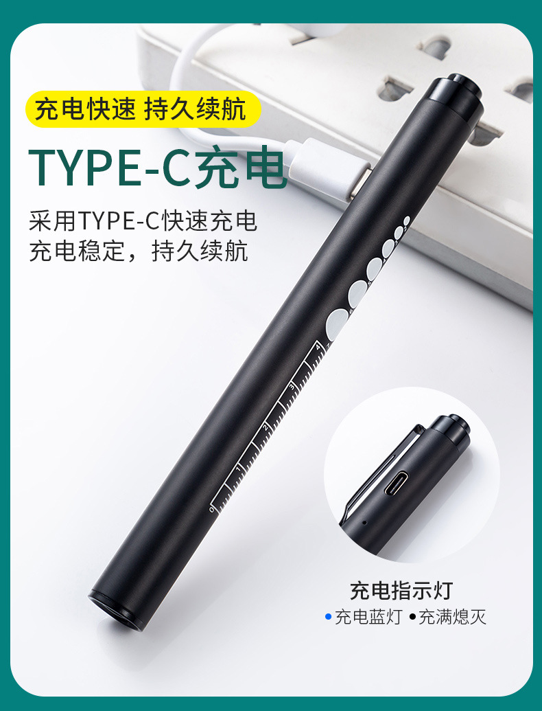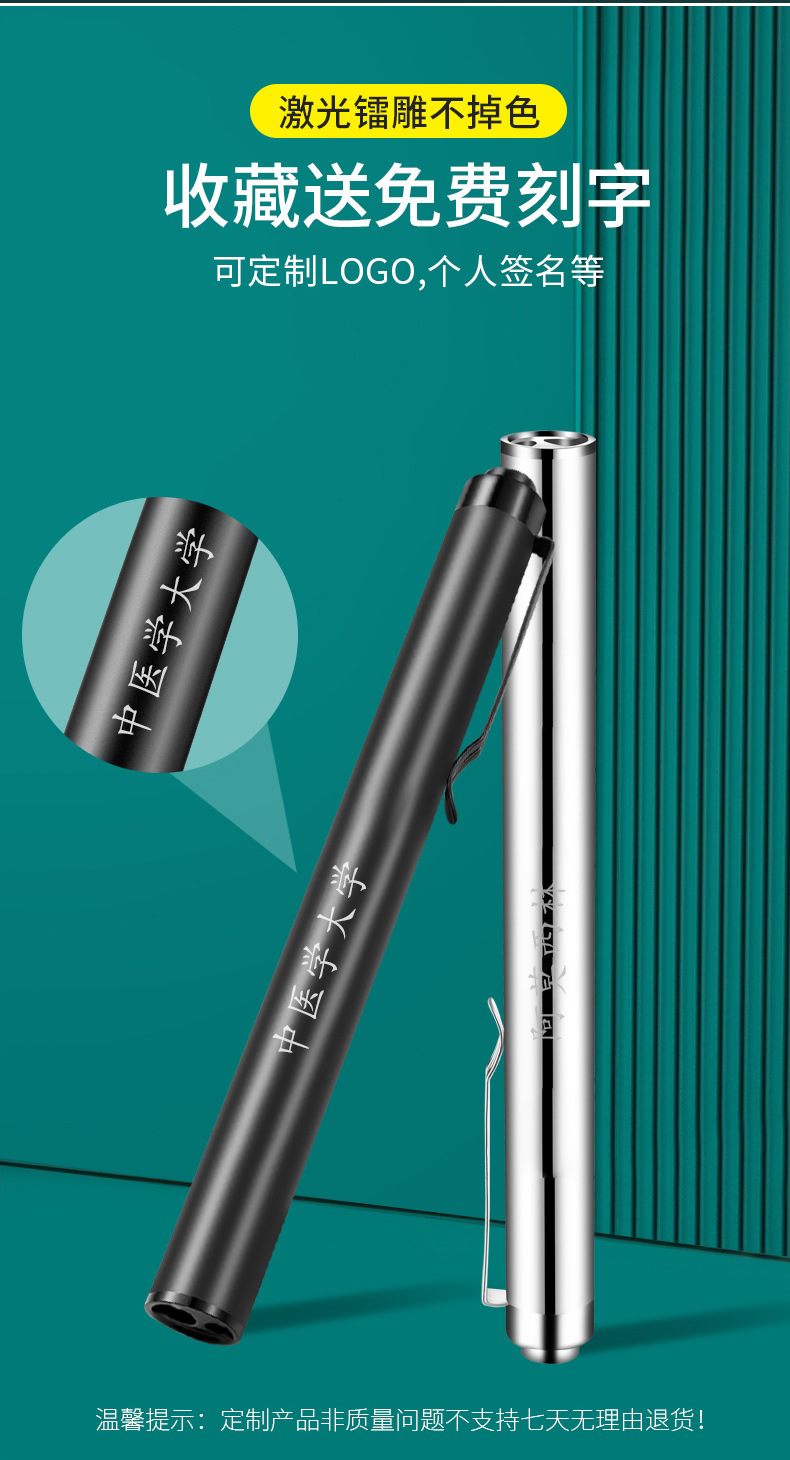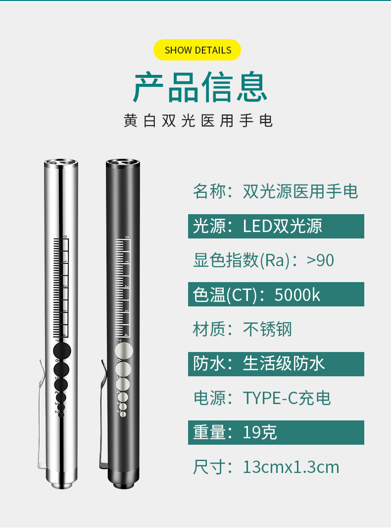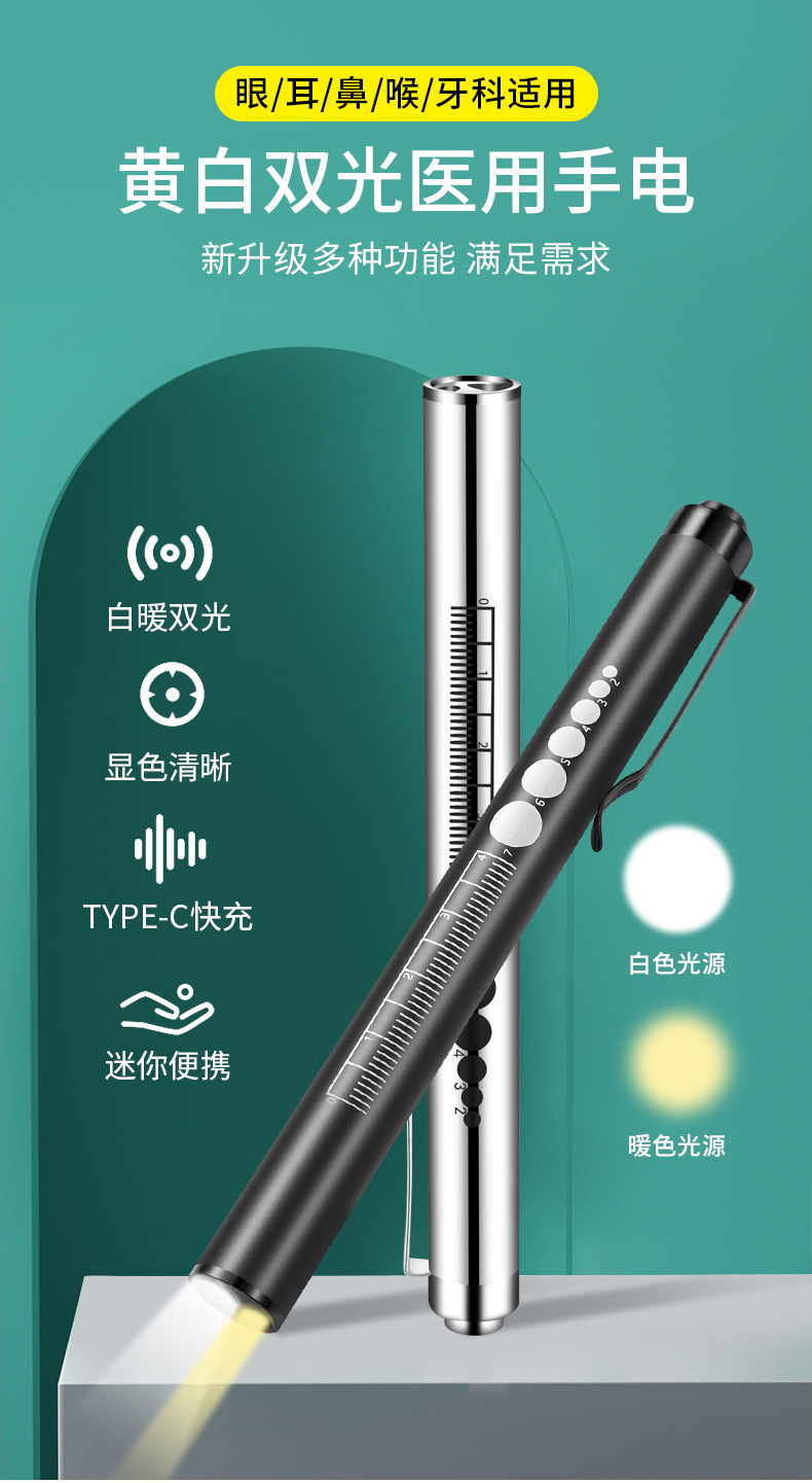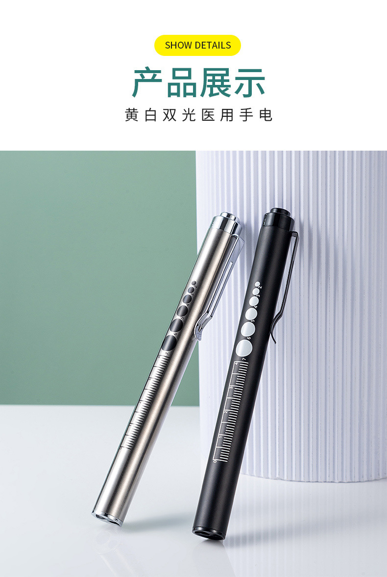 手持便携式双光手电LED灯 瞳孔笔灯黄光白光口腔灯不锈钢护士晨检 投诉
