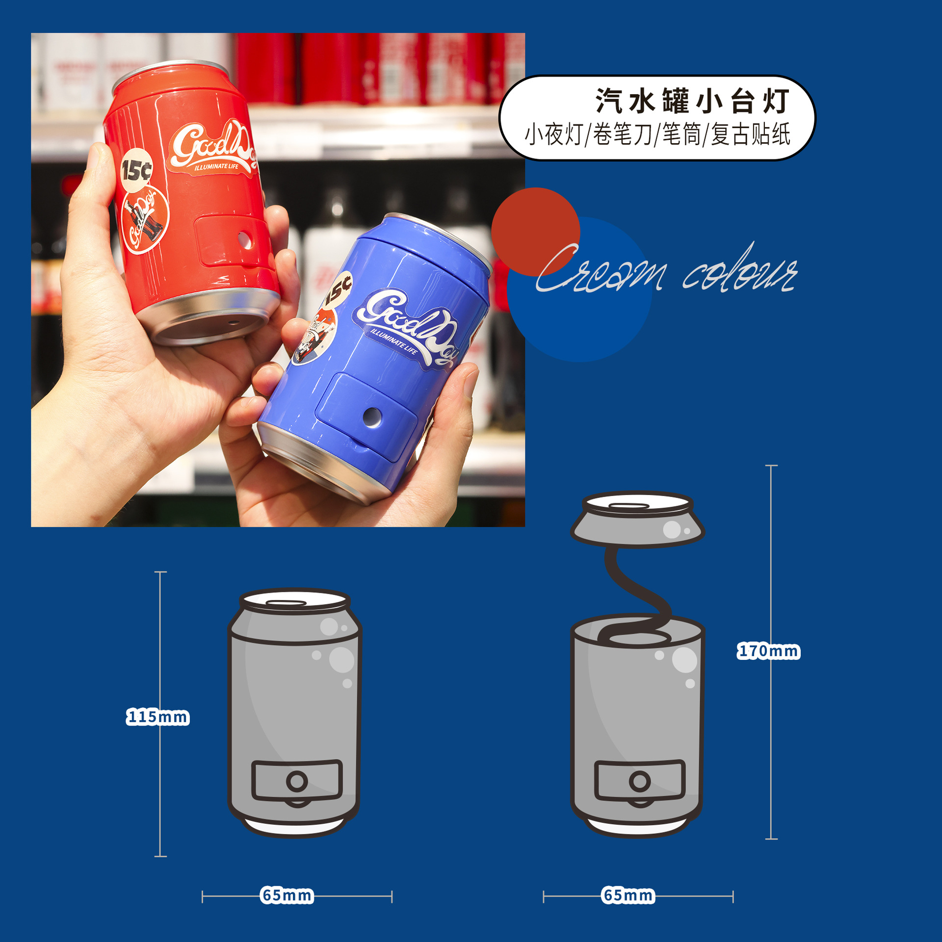 名称: 汽水罐小台灯: 彩盒