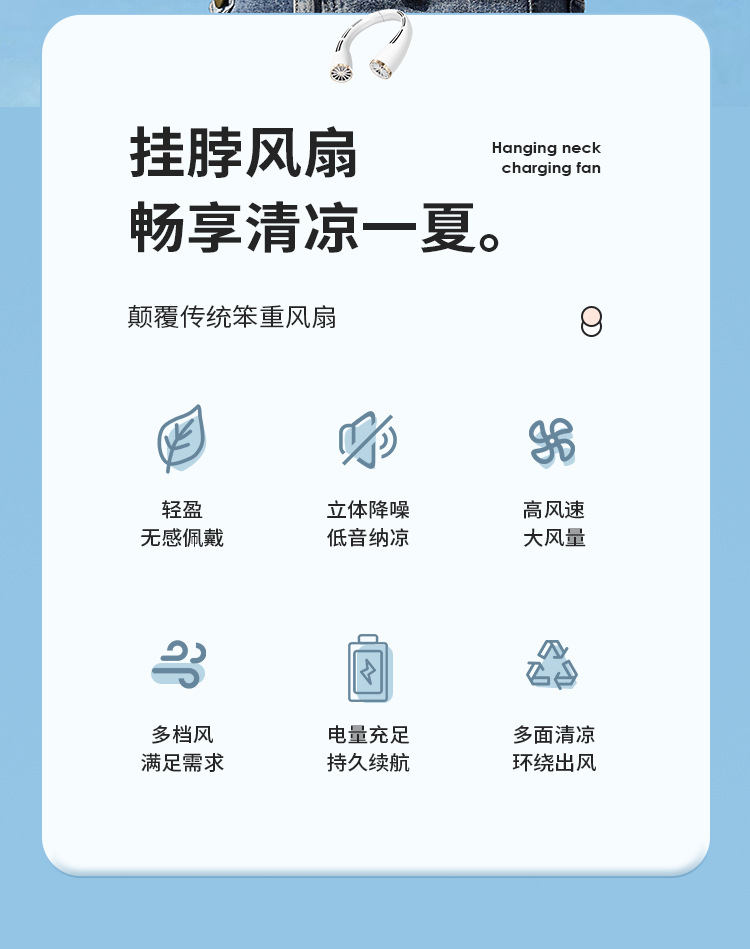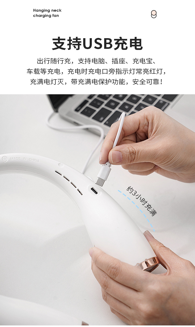 无叶挂脖小风扇便捷式户外随身学生运动懒人usb可充电风扇大风力 English | 投诉