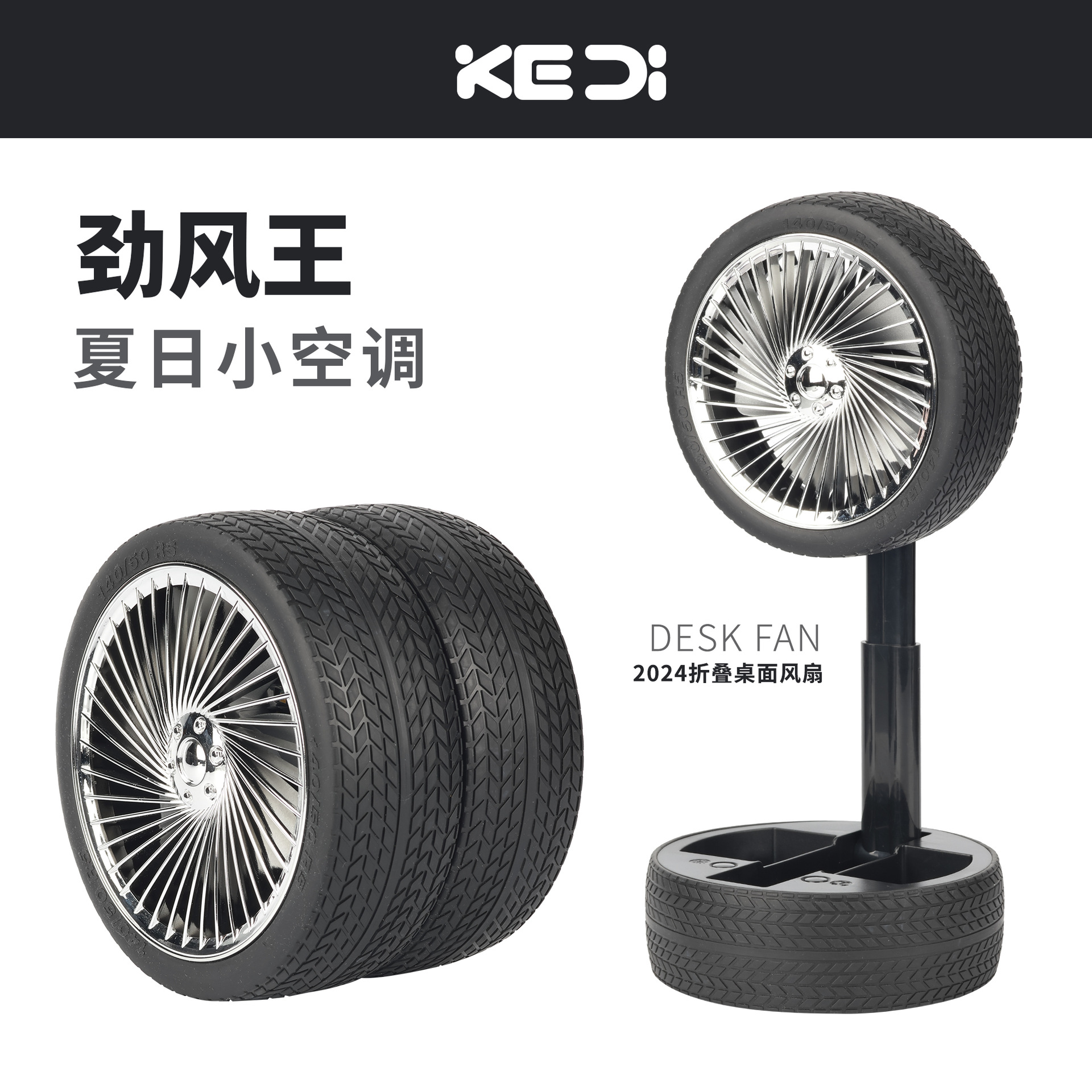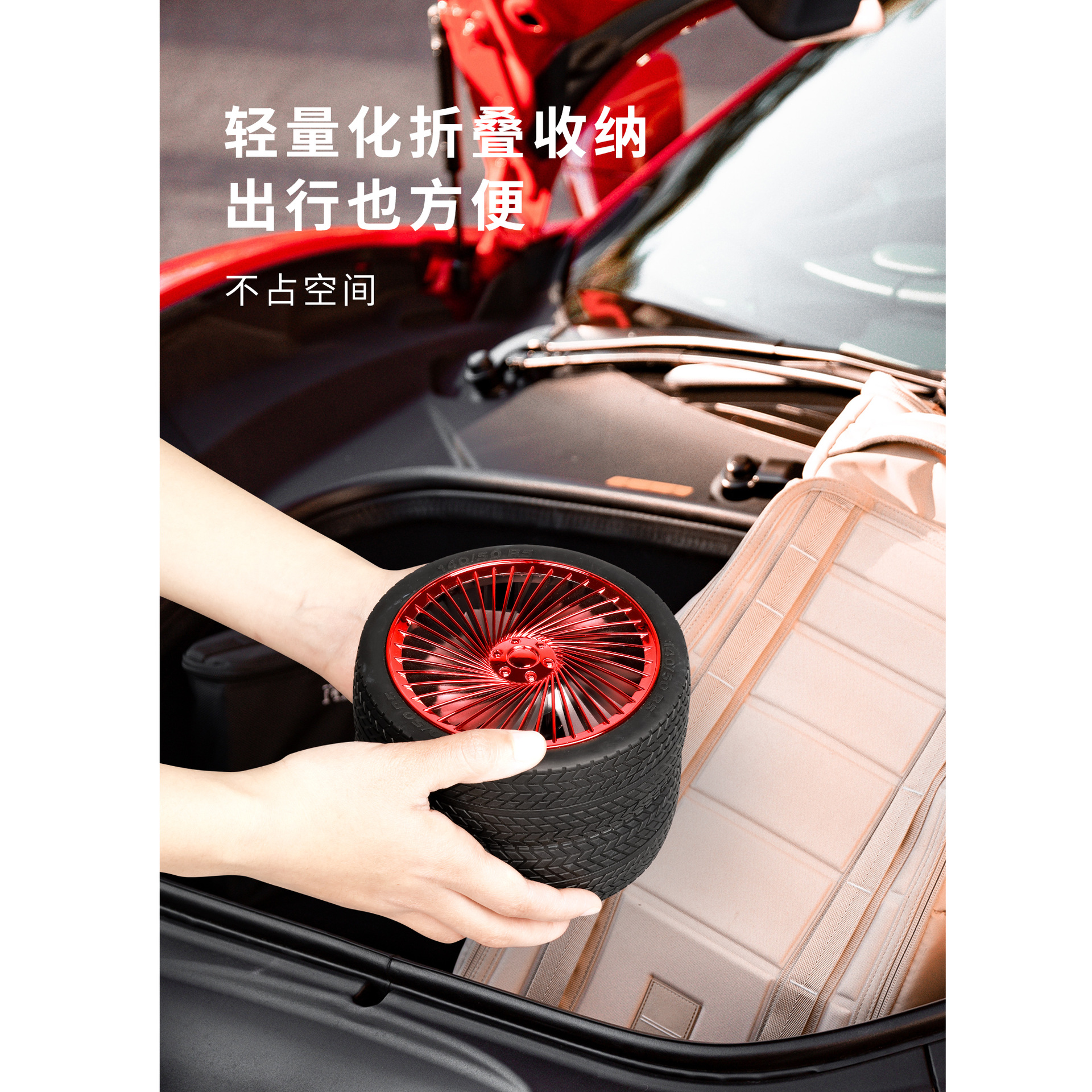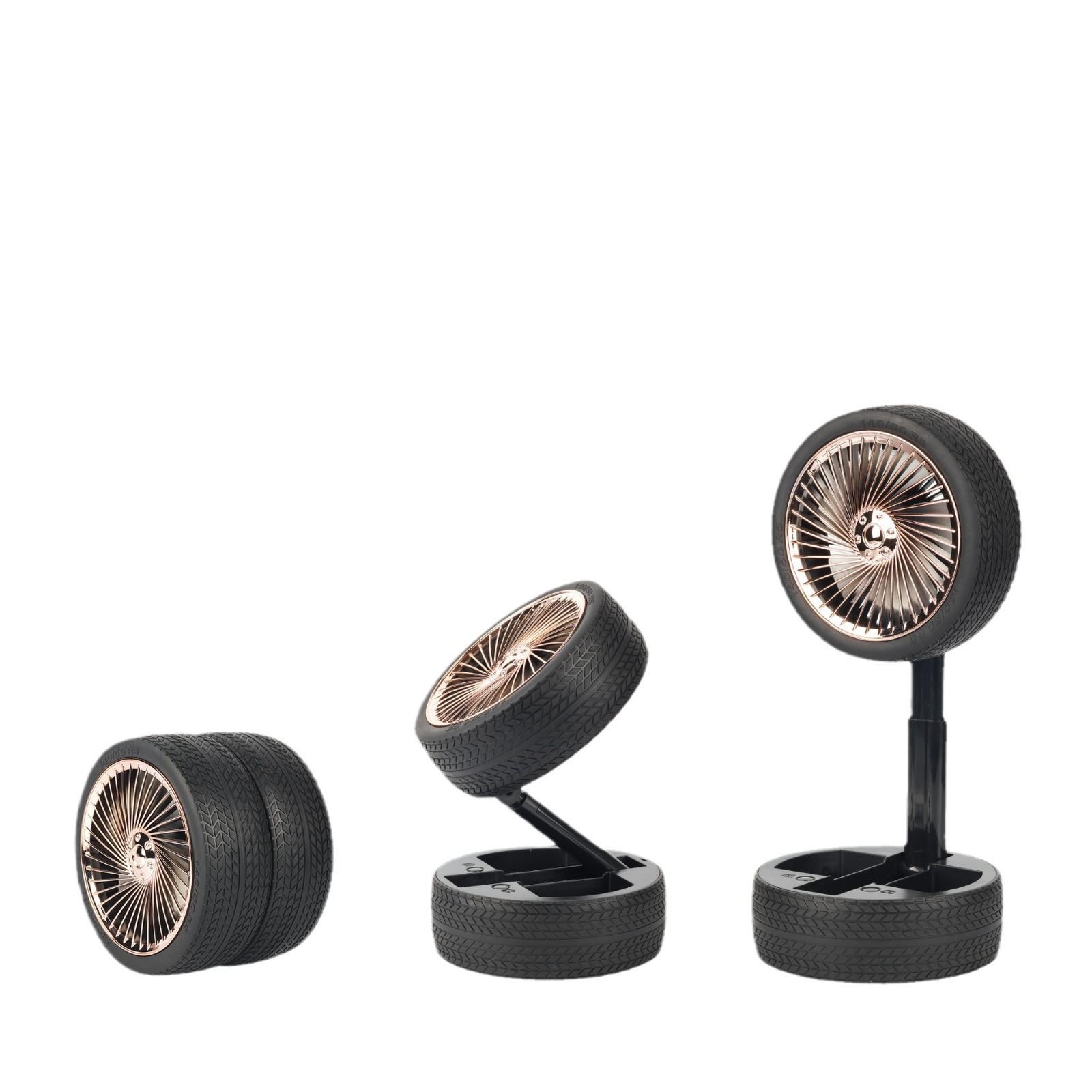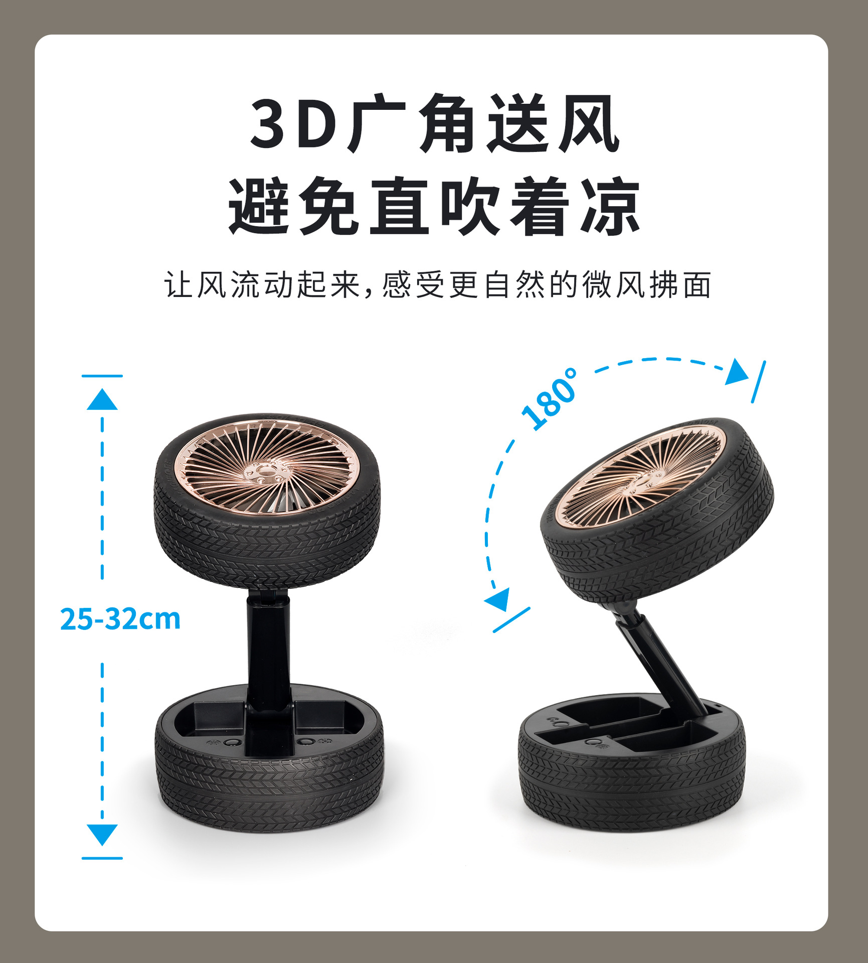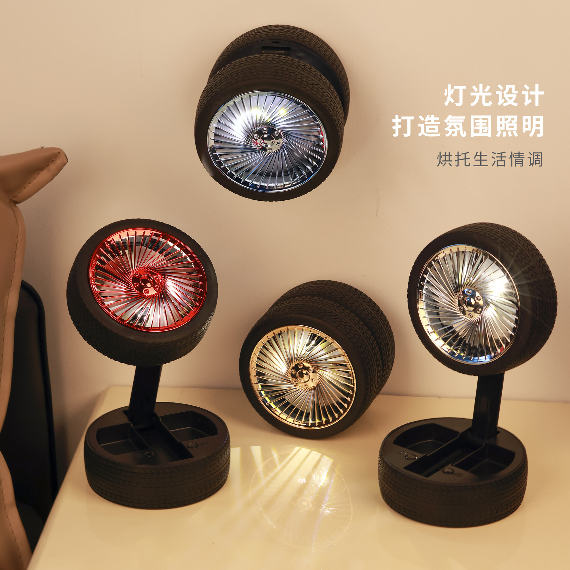 轮胎折叠小风扇便携台式充电带灯光户外露营迷你电风扇三档大风力