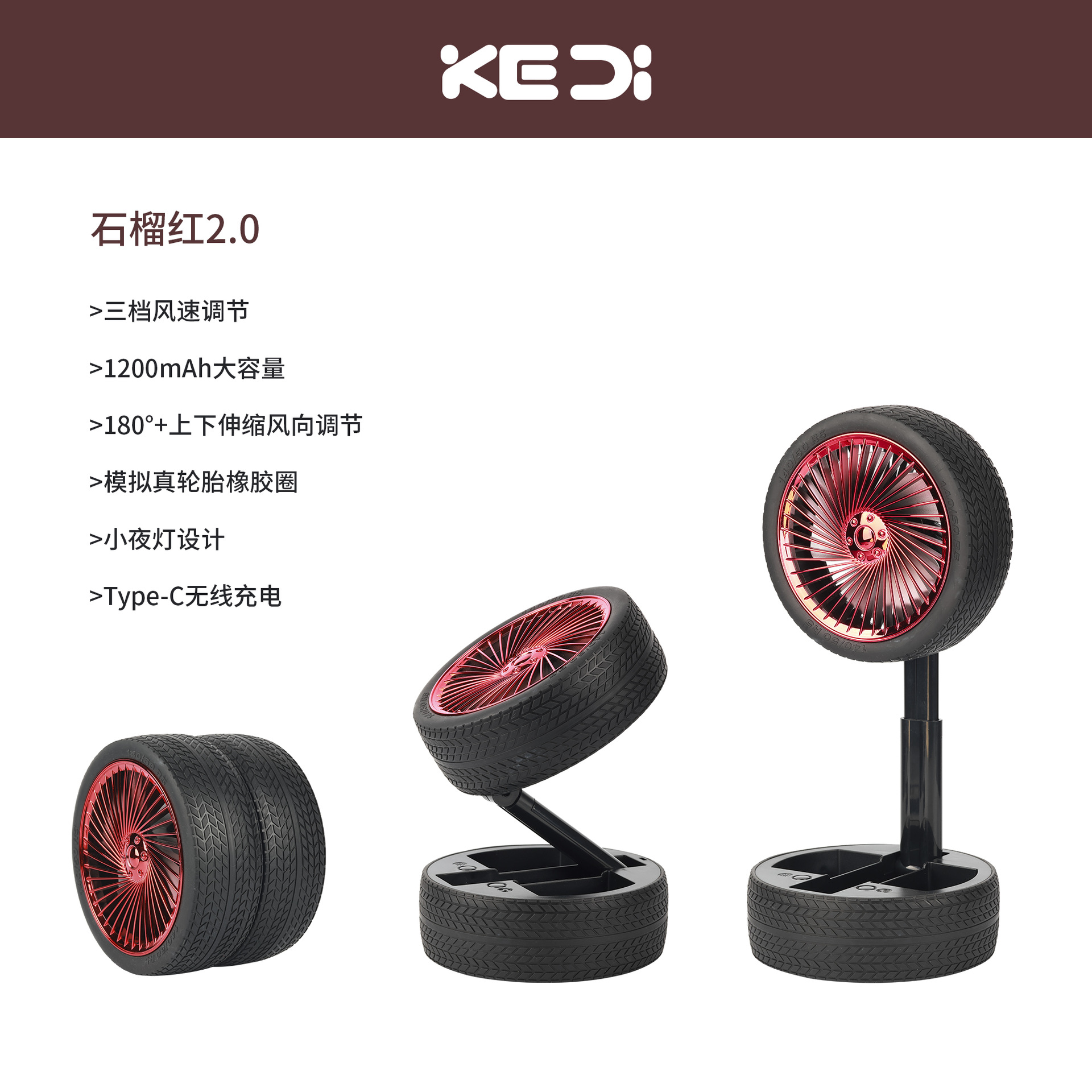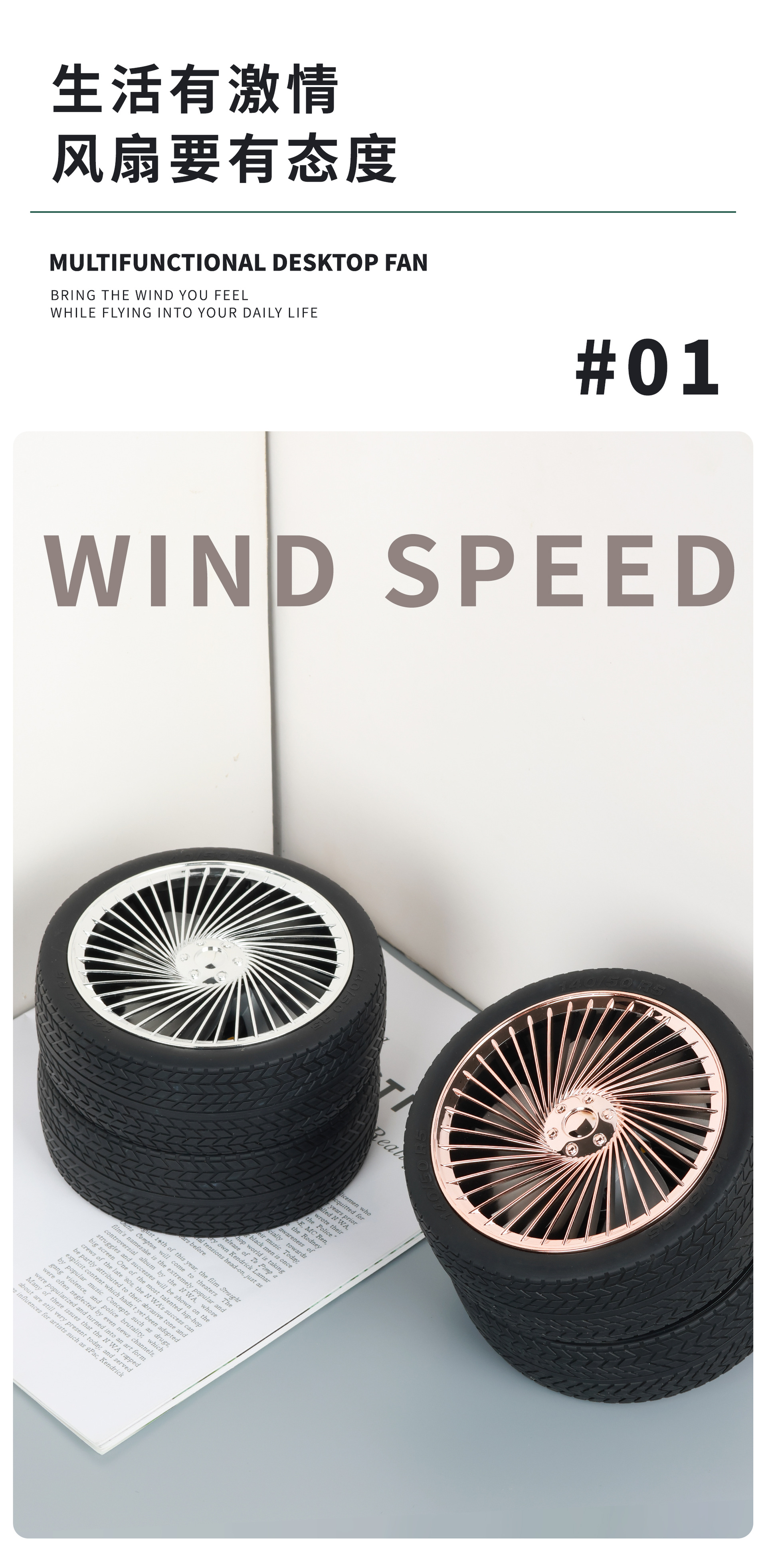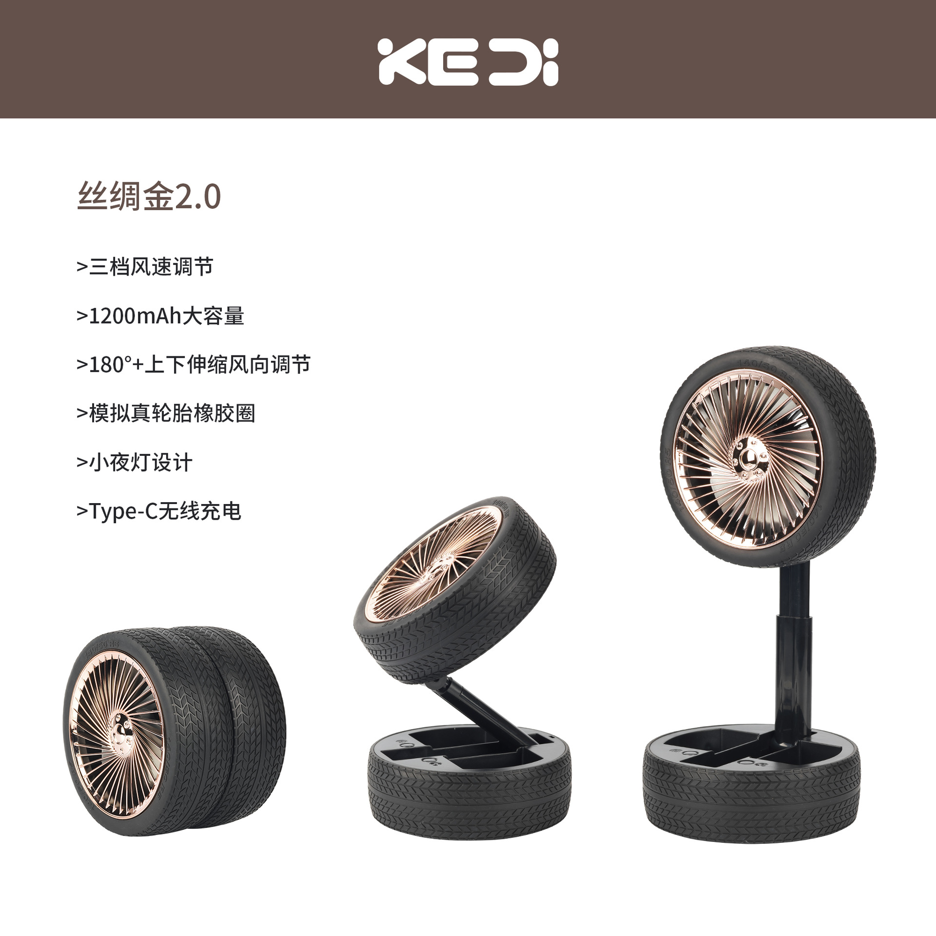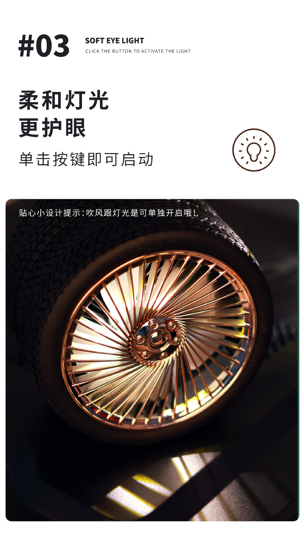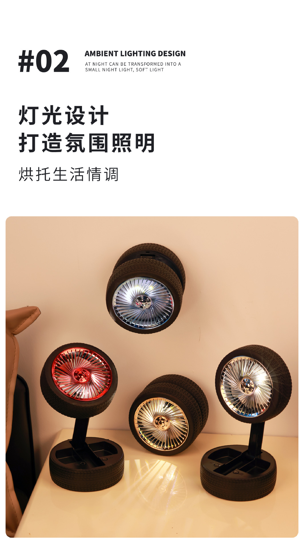 轮胎折叠小风扇便携台式充电带灯光户外露营迷你电风扇三档大风力 English | 投诉