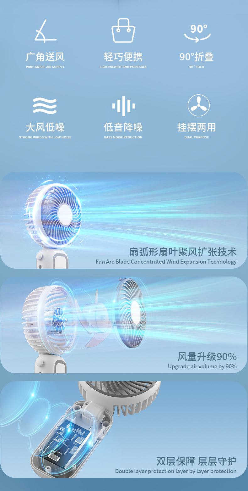 挂脖手持小风扇便携式多功能折叠桌面风扇USB充电学生办公室电风 English | 投诉