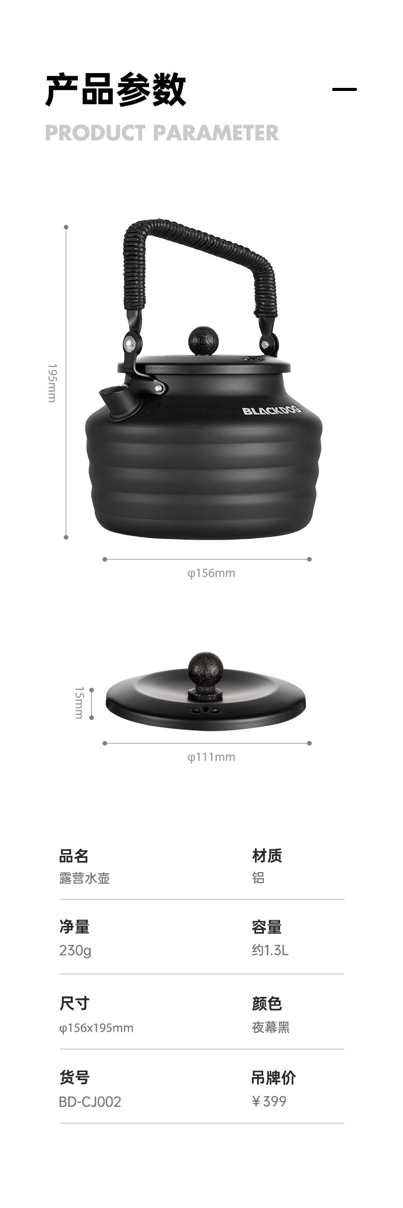Blackdog黑狗轻量铝合金烧水壶户外露营野营便携式茶壶野外煮水壶 投诉