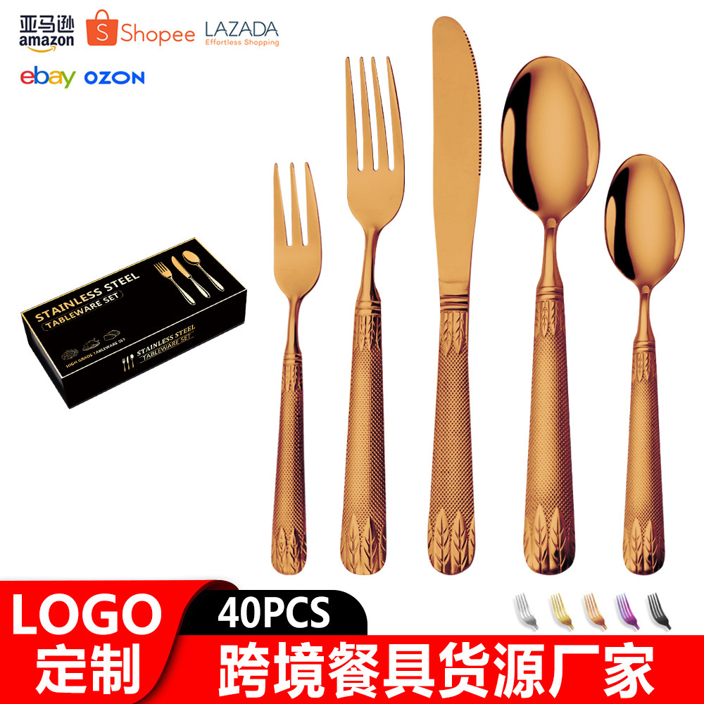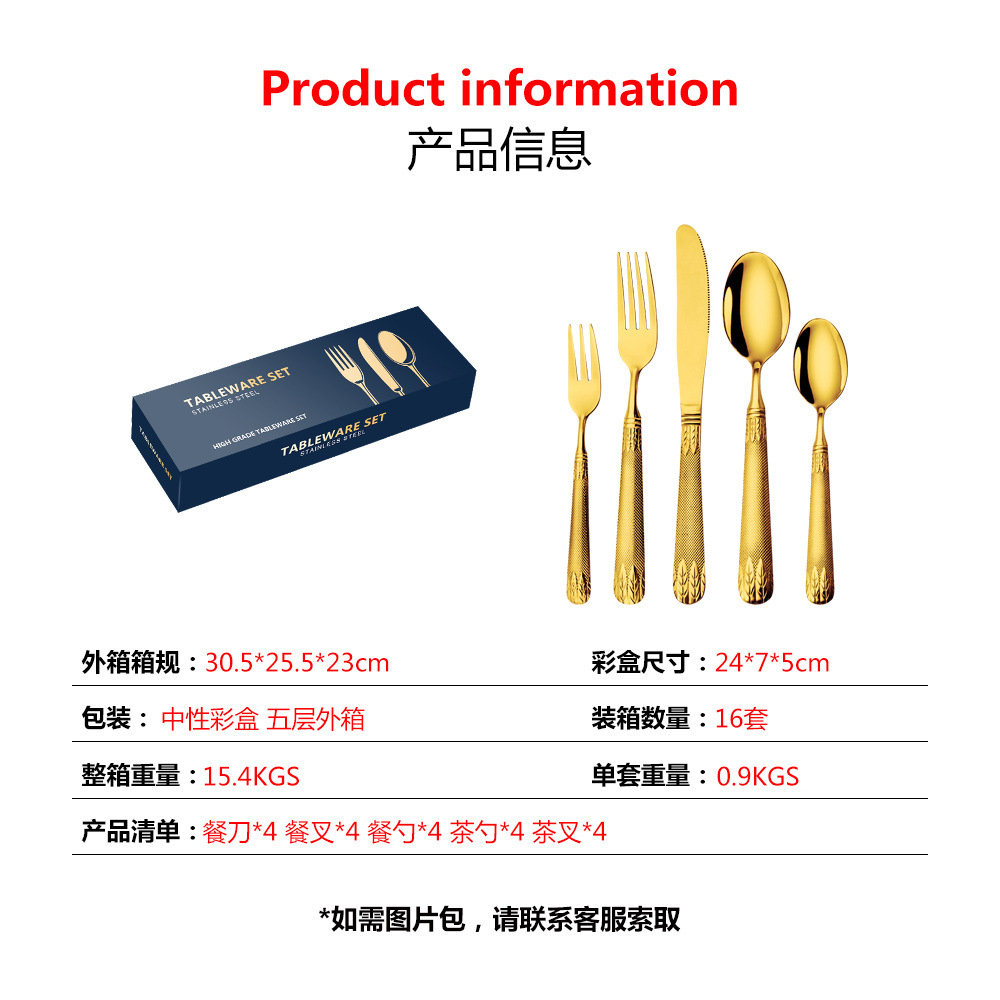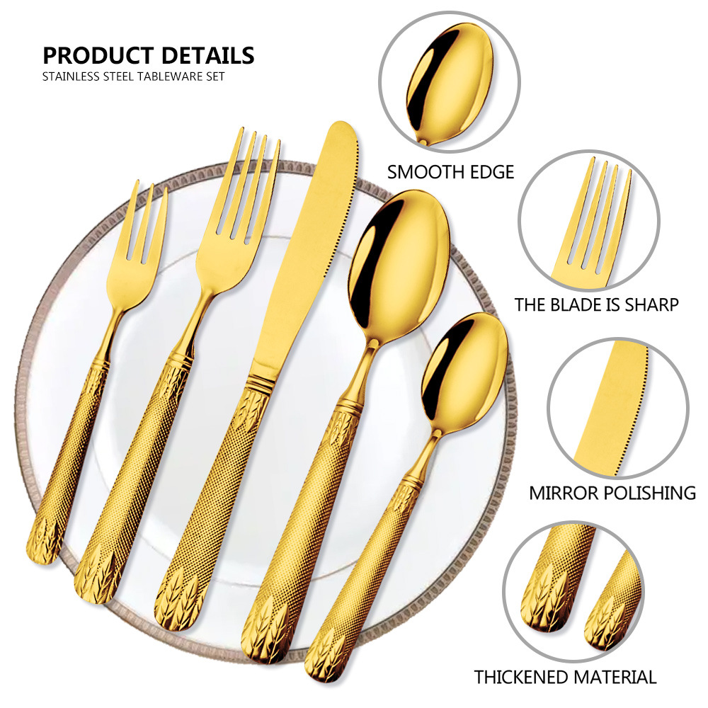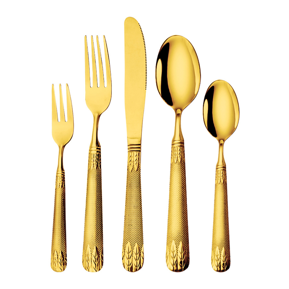 亚马逊不锈钢餐具套装刀叉勺跨境新款麦穗镀金色西餐牛排刀叉勺子