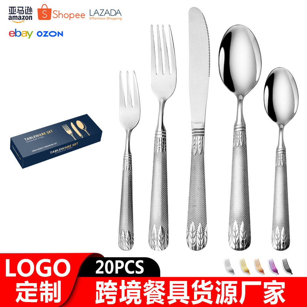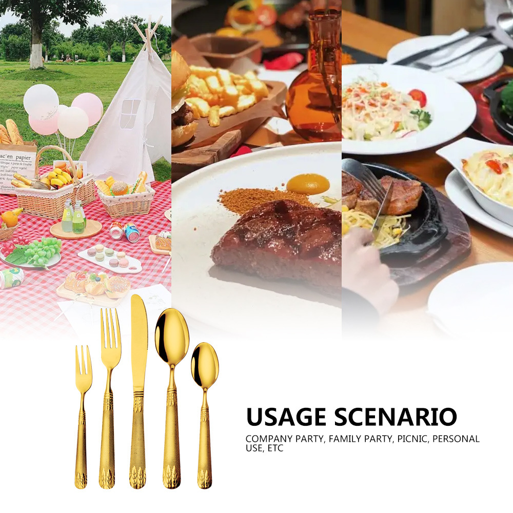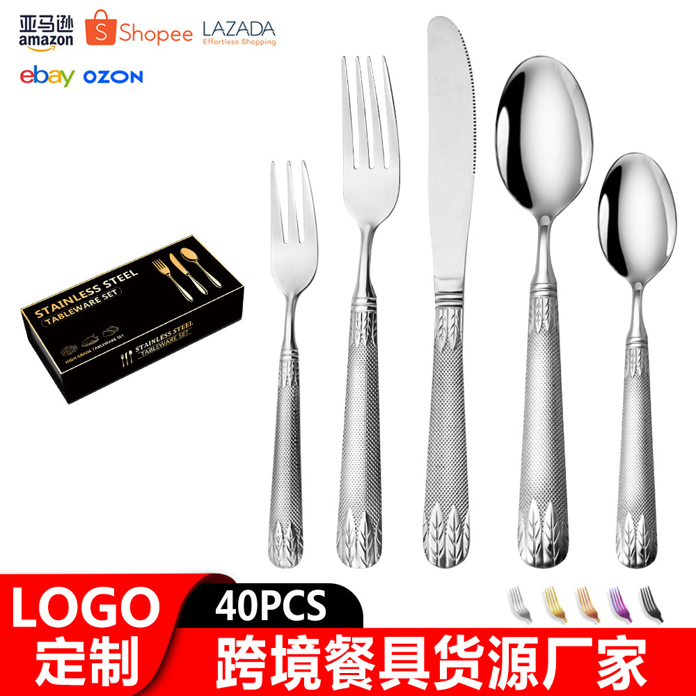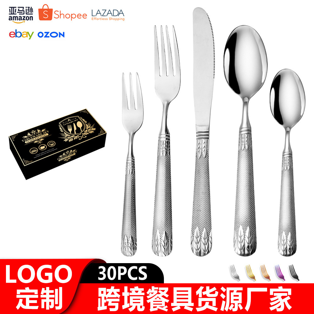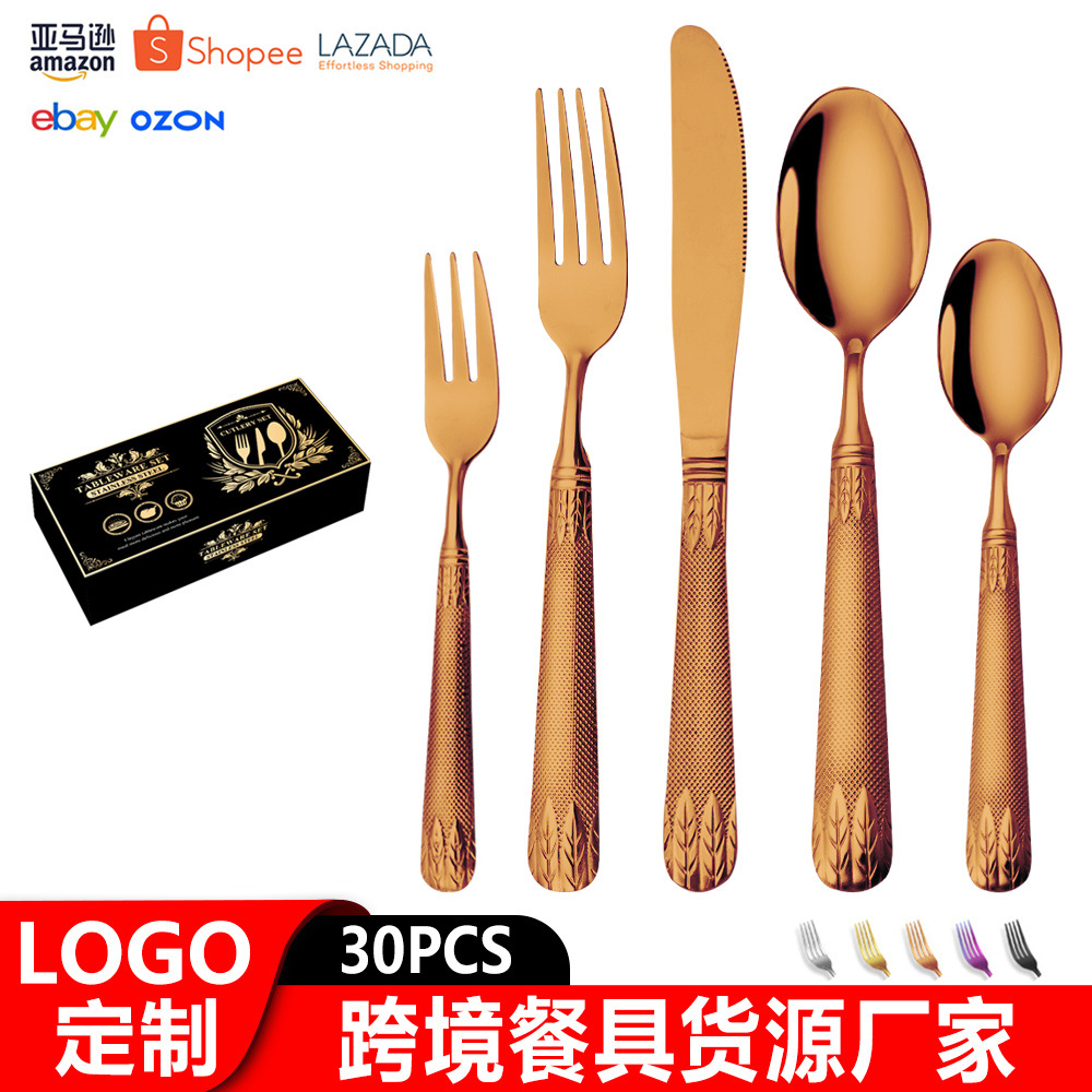 亚马逊不锈钢餐具套装刀叉勺跨境新款麦穗镀金色西餐牛排刀叉勺子