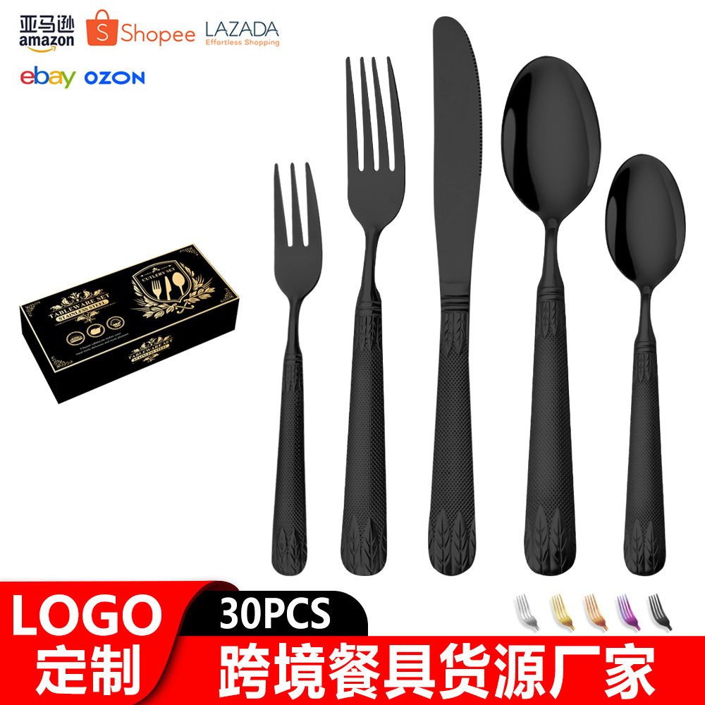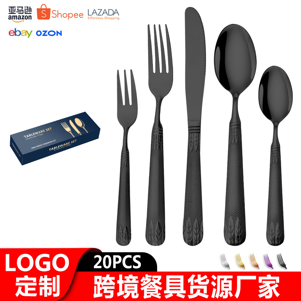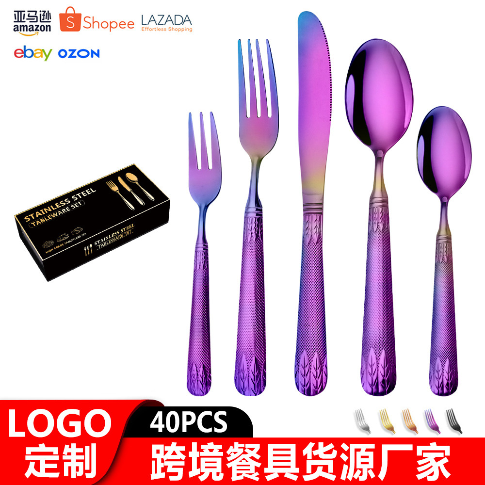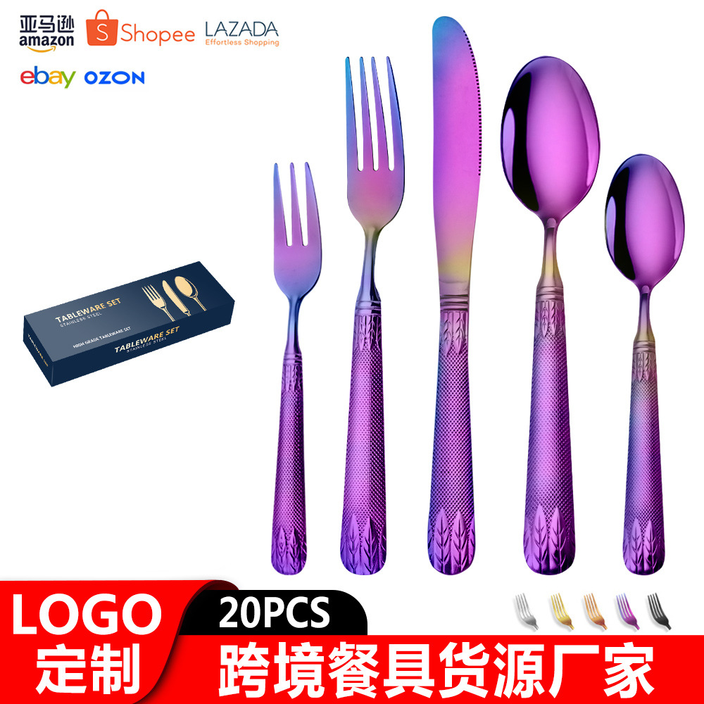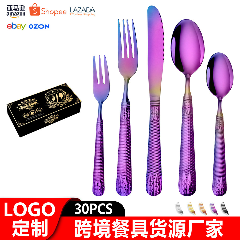 亚马逊不锈钢餐具套装刀叉勺跨境新款麦穗镀金色西餐牛排刀叉勺子