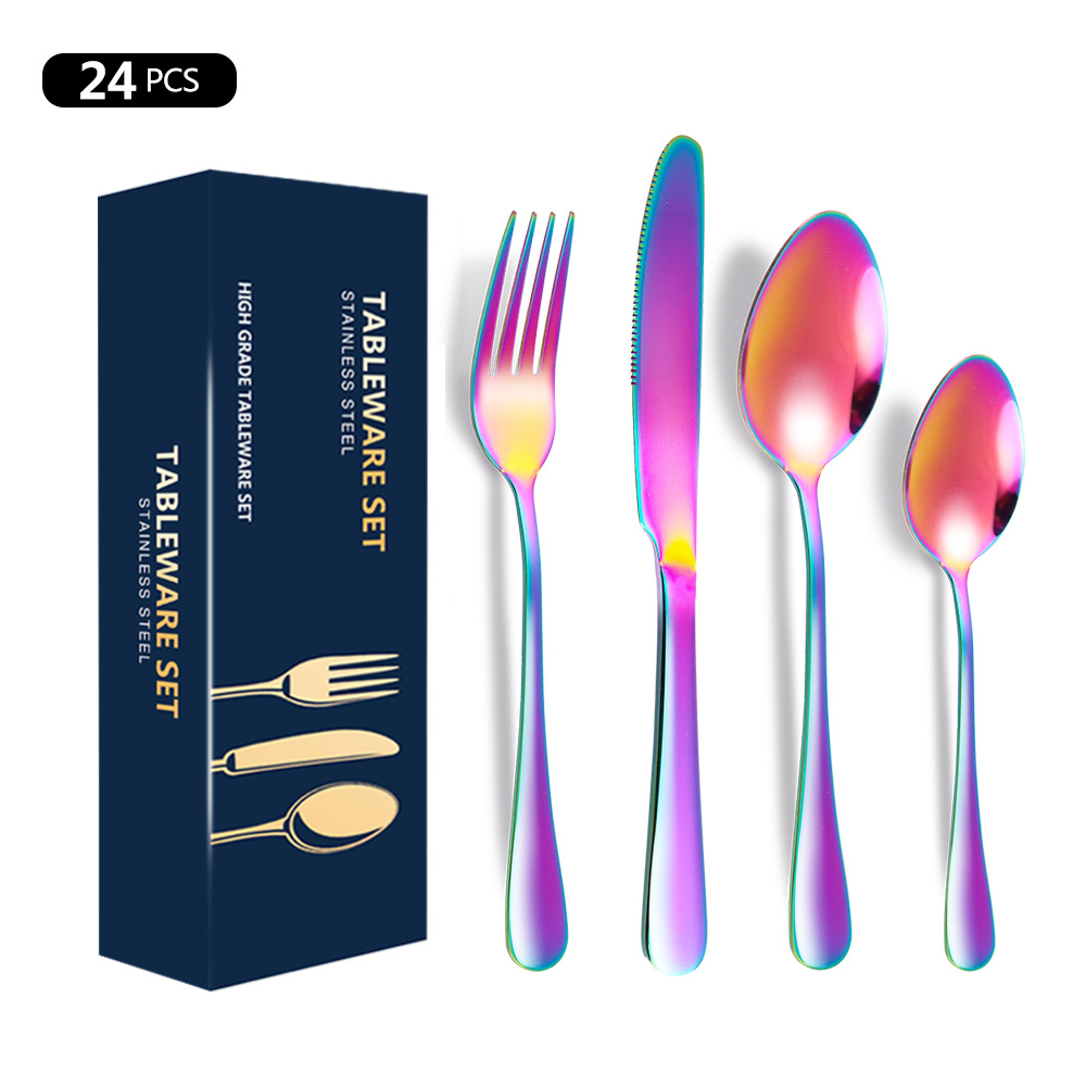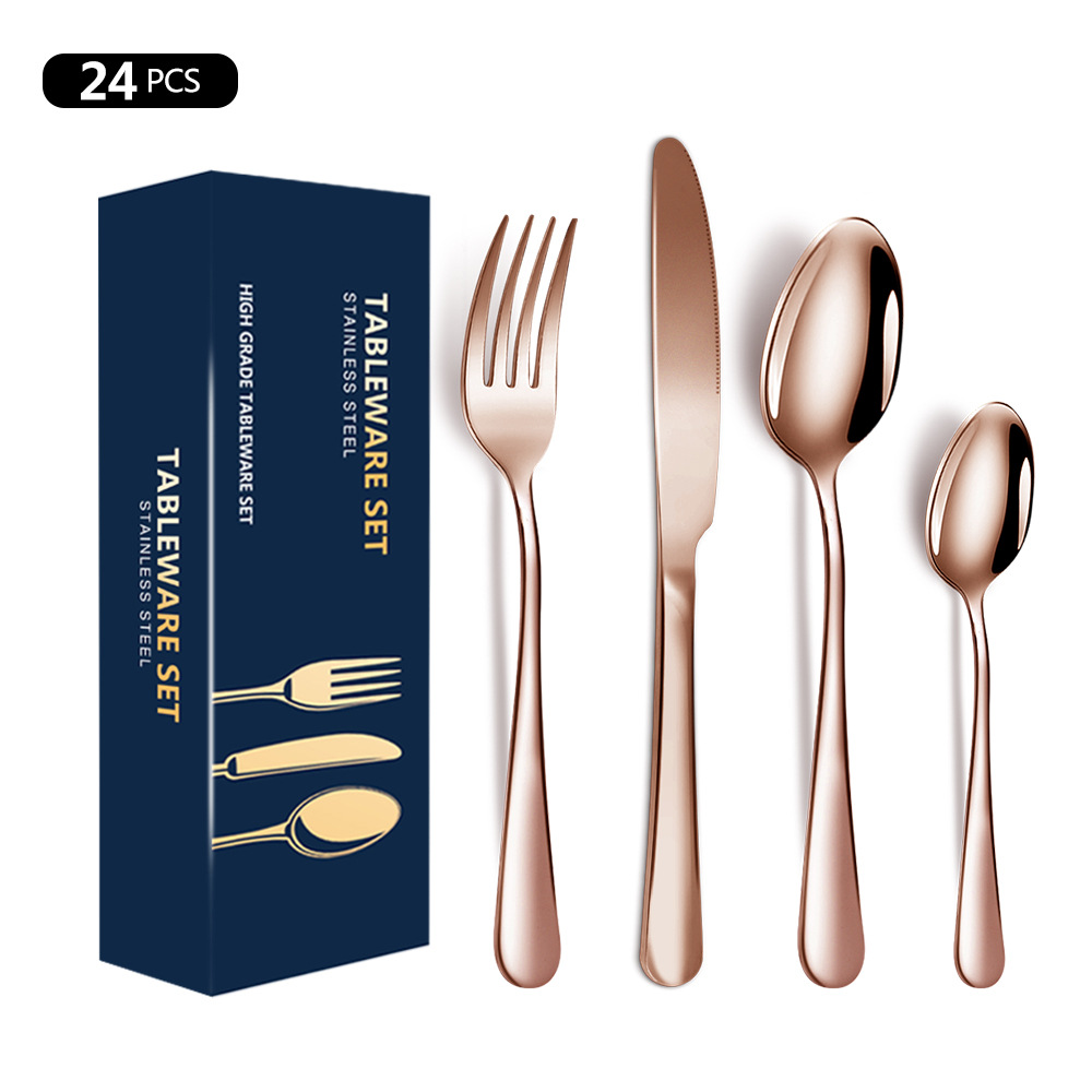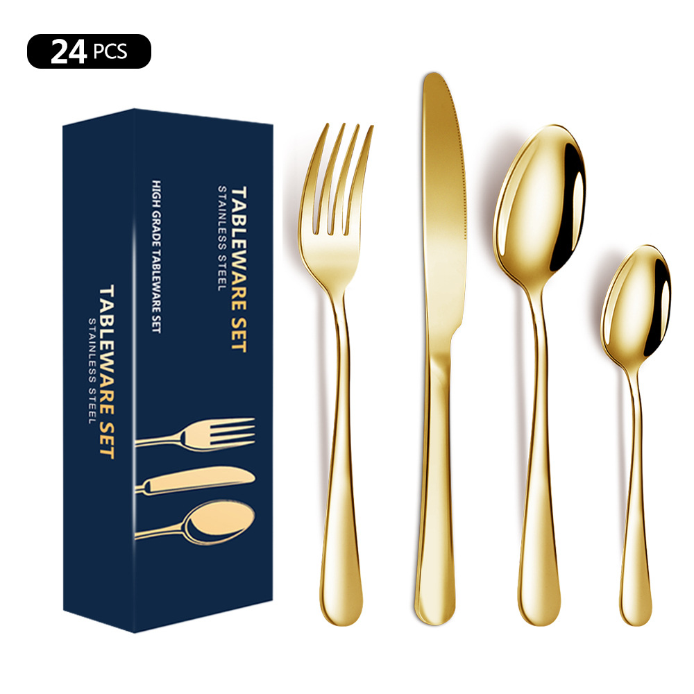 跨境亚马逊1010不锈钢餐具四件套24件套西餐牛排刀叉勺子礼盒套装