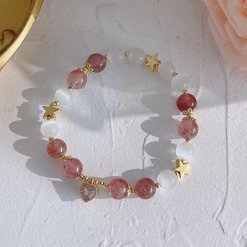 2024新款天然草莓晶手链水晶手串简约轻奢设计送闺蜜女友礼物闺女