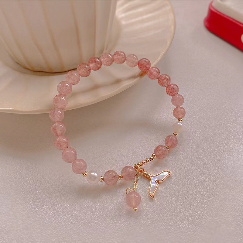 天然草莓晶美人鱼吊坠手链 ¥886 9996个可售