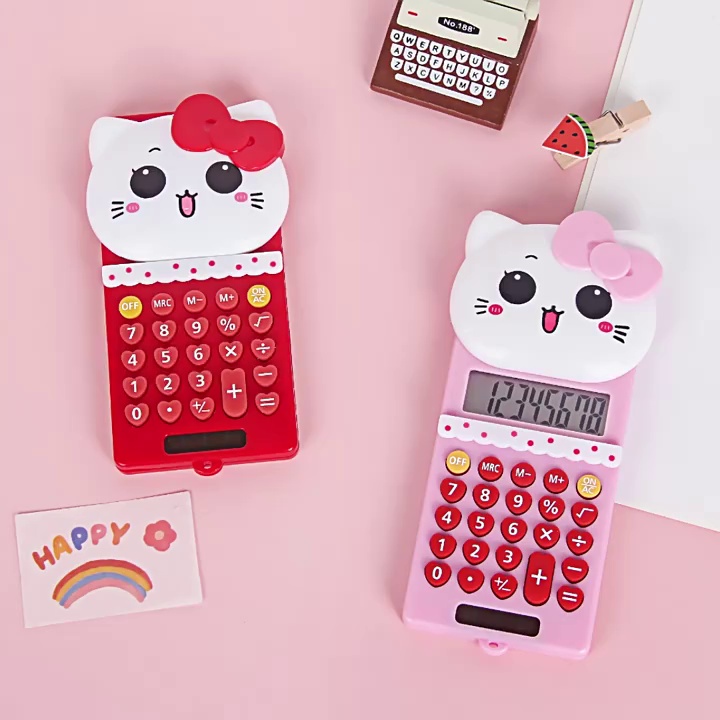 可爱 计算机 KT-966推盖式 猫头滑盖迷你计算器 时尚便携可爱KT猫