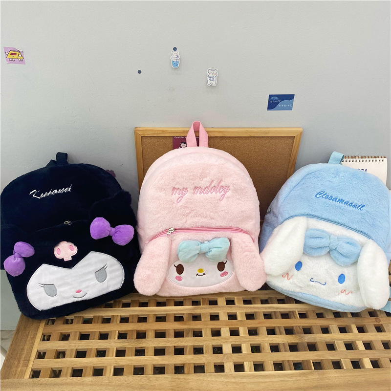 MQ毛绒双肩包学生百搭背包卡通小书包甜妹背包