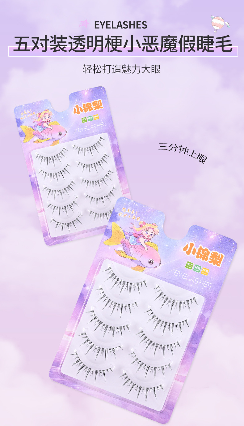 整条式五对装透明梗小恶魔假睫毛自然卷翘灵动漫画芭比大眼假睫毛专供出口 English | 投诉