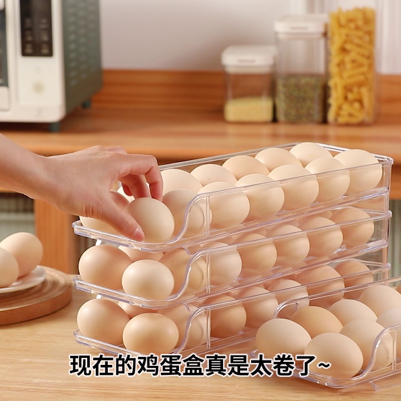 冰箱用鸡蛋盒抽屉式带盖保鲜鸡蛋格收纳蛋盒架托滚动式鸡蛋收纳盒 投诉