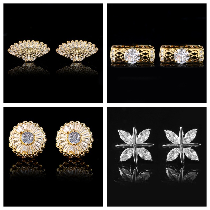 2024轻奢金色气质满钻锆石袖钉男士法式衬衫袖口时尚个性新颖袖扣 English | 投诉