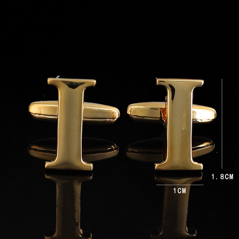 现货英文字母袖扣纯金属金色袖钉情侣礼物法式衬衫袖口扣镂空袖钉 English | 投诉