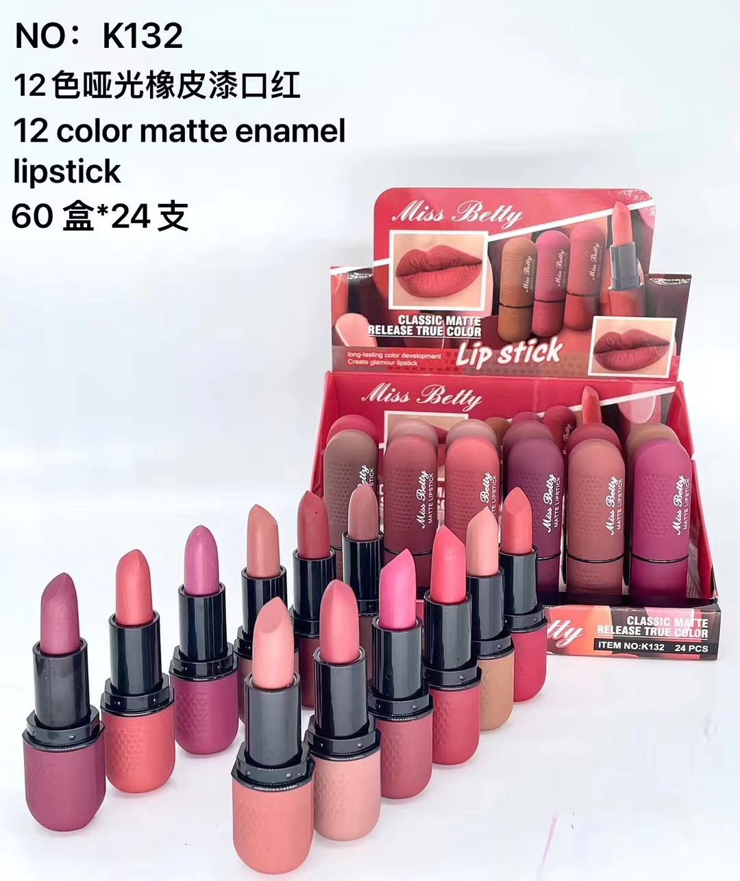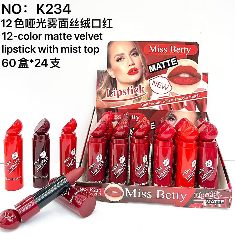 Miss Betty 新款口红防水不掉色持久12色橡皮哑光口红现货