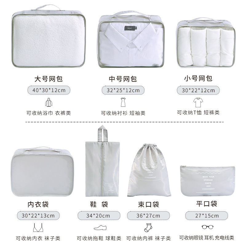 润晖新款英伦斜七件套 出差旅行衣物整理收纳套装拉杆箱收纳7件套 旅行收纳套装 旅行收纳七件套 收纳包