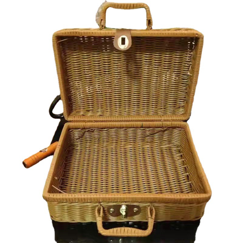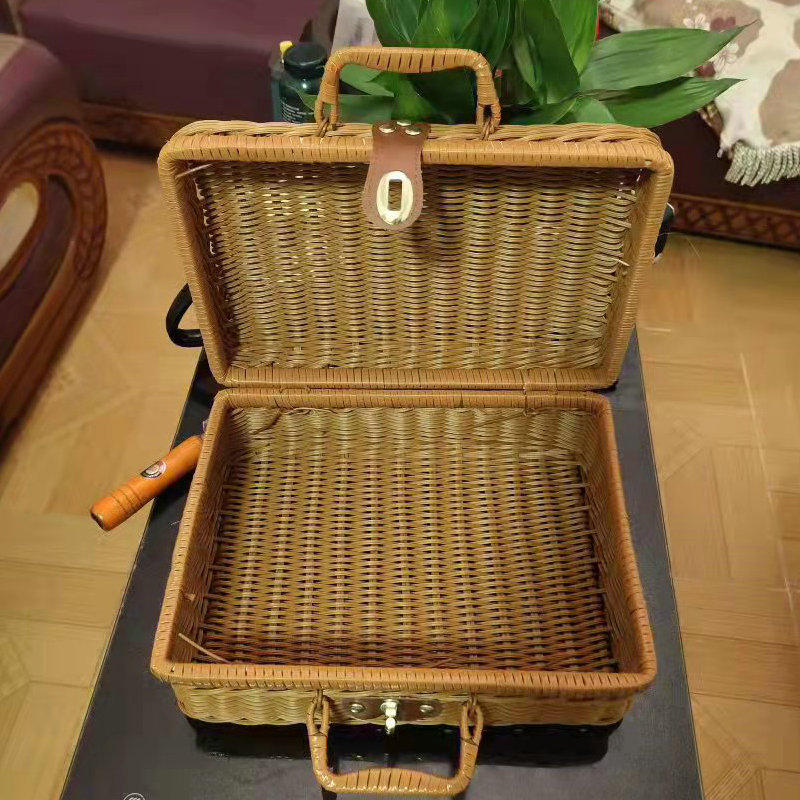 复古藤编田园风手提箱 家居外出收纳手提箱手工制品