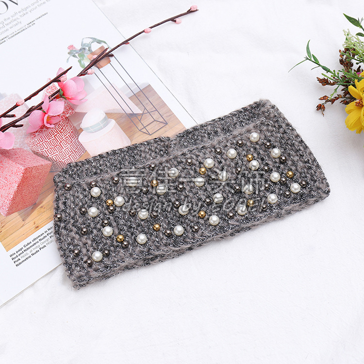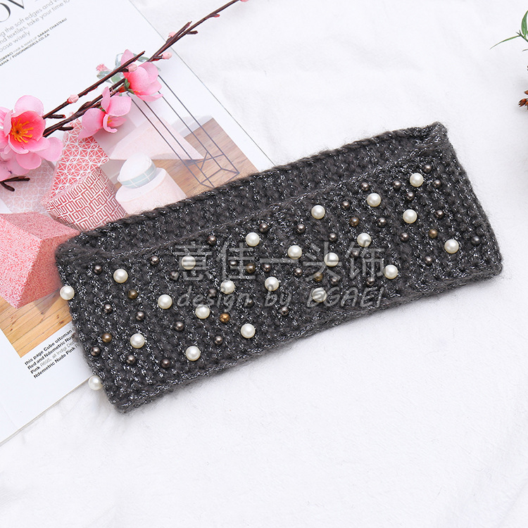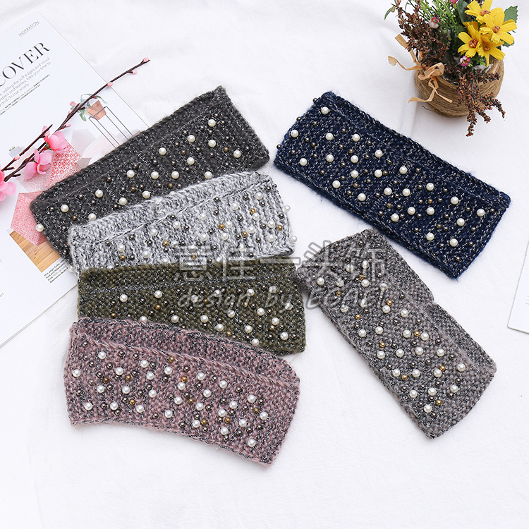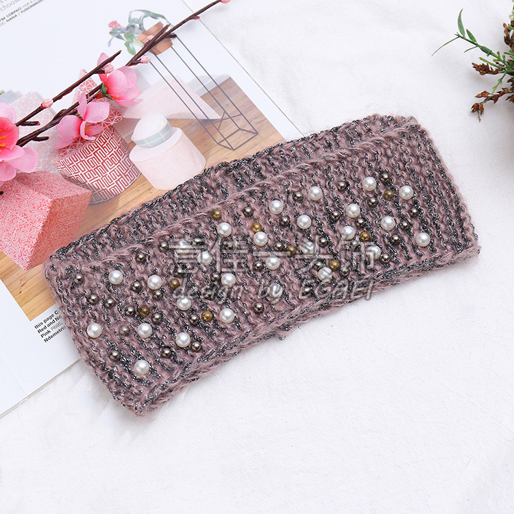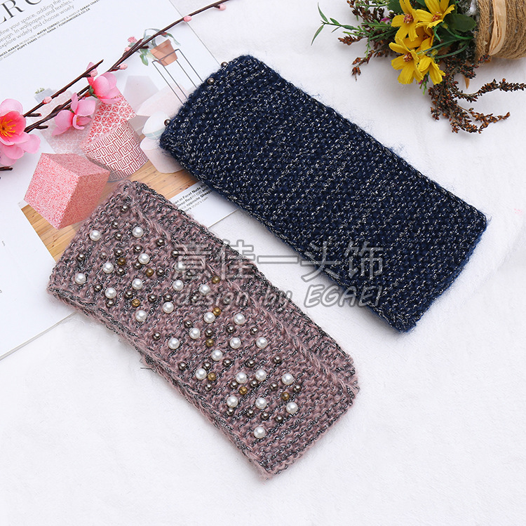 品名:马海毛前窄后宽订珍珠针织发带