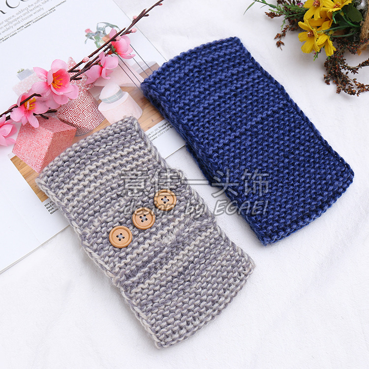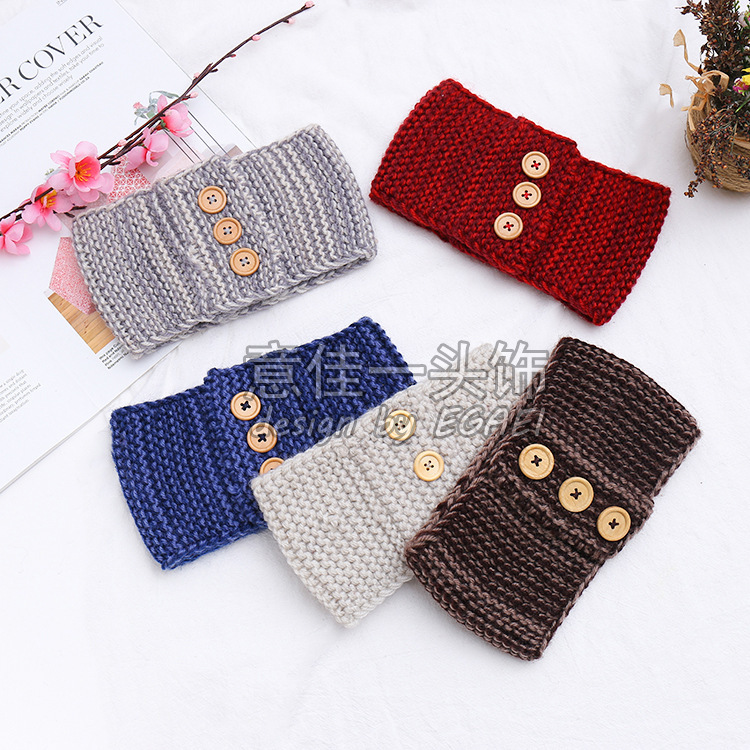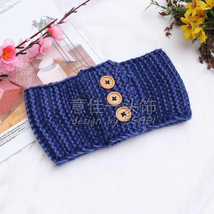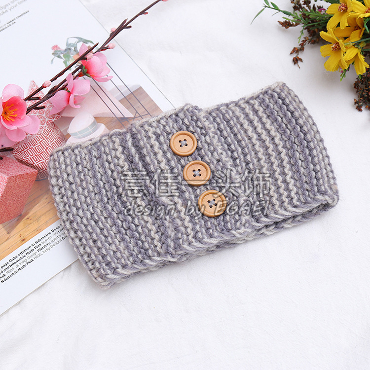 品名:来回针3颗木扣针织发带