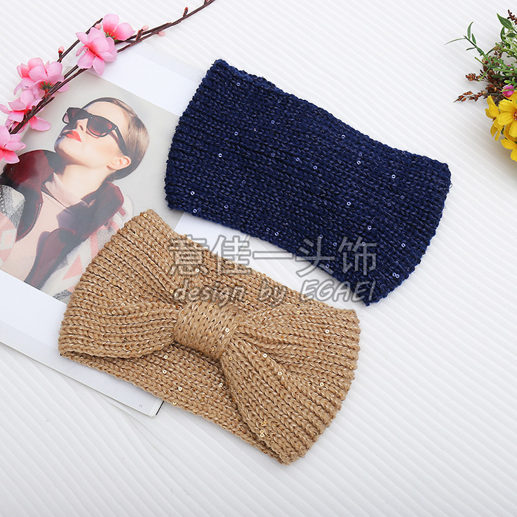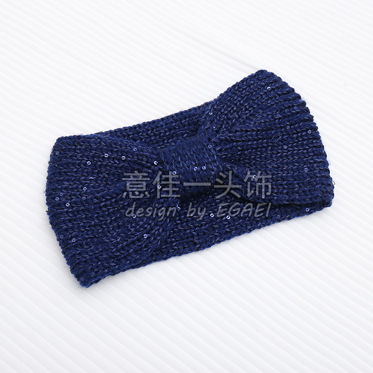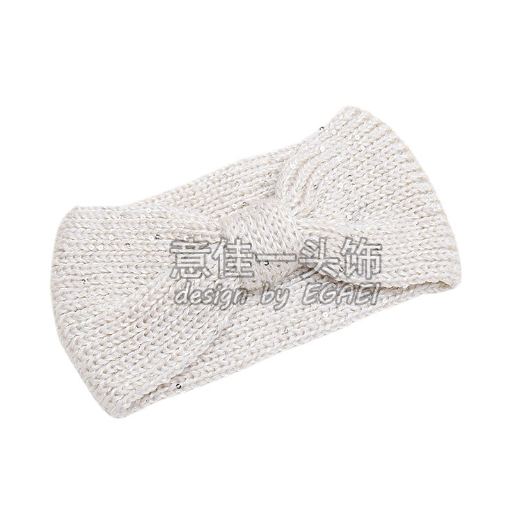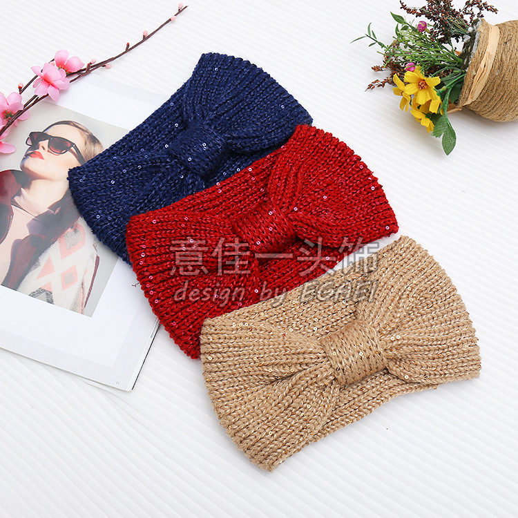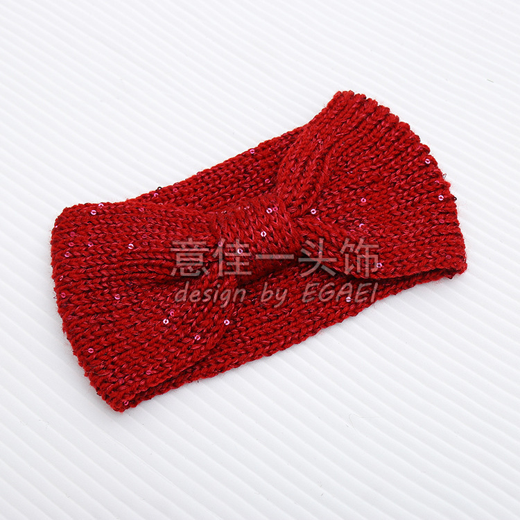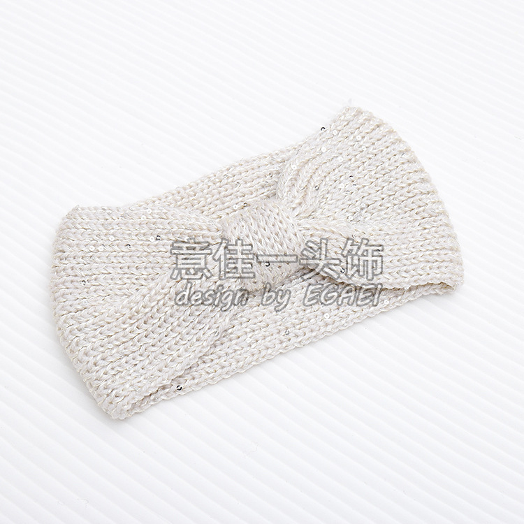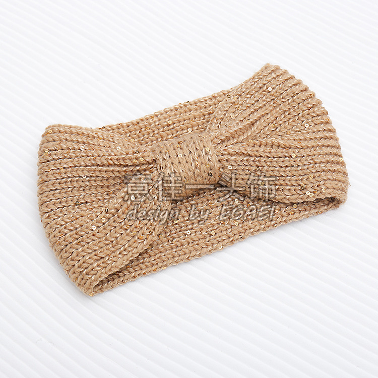 品名:珠片纱平针蝴蝶结针织发带