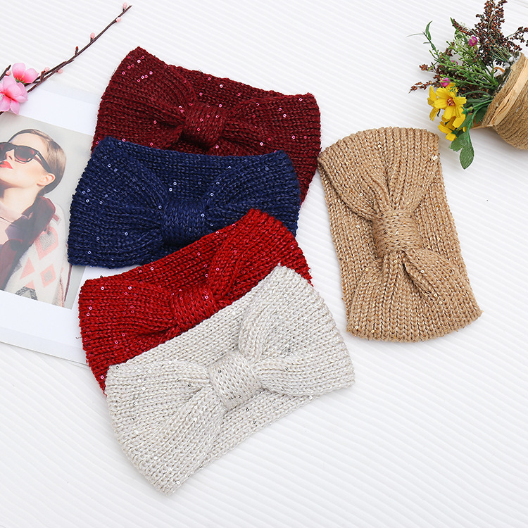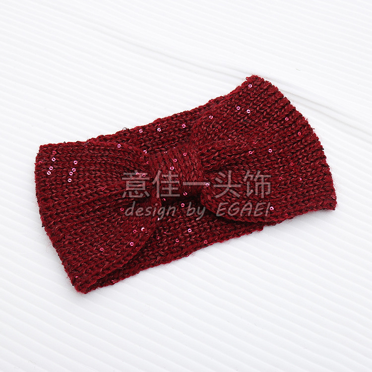 品名:珠片纱平针蝴蝶结针织发带