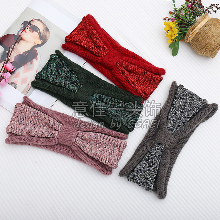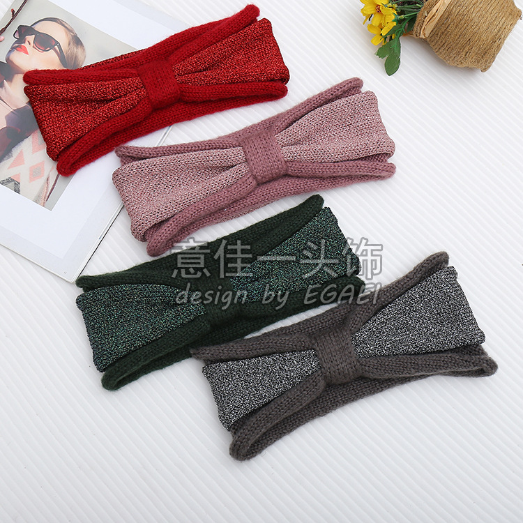 品名:珠片纱平针蝴蝶结针织发带