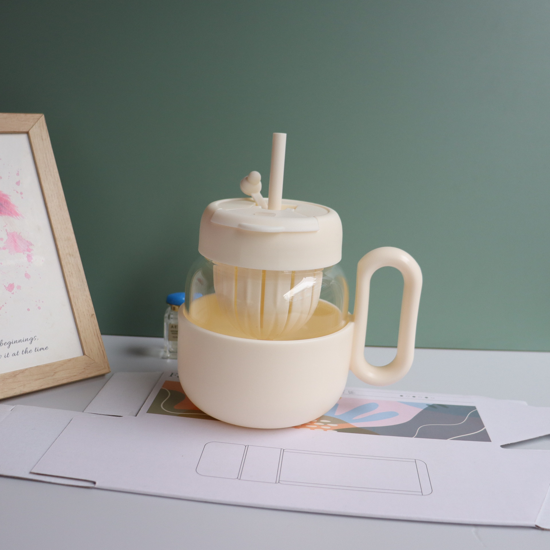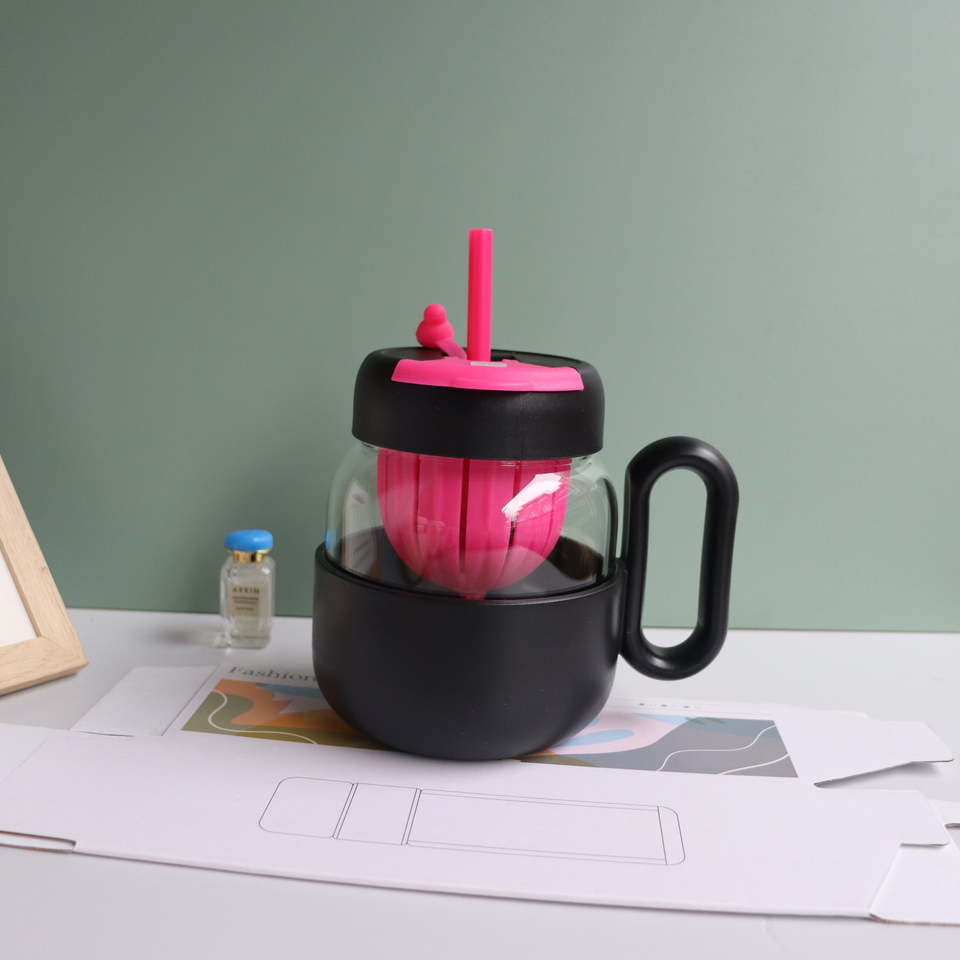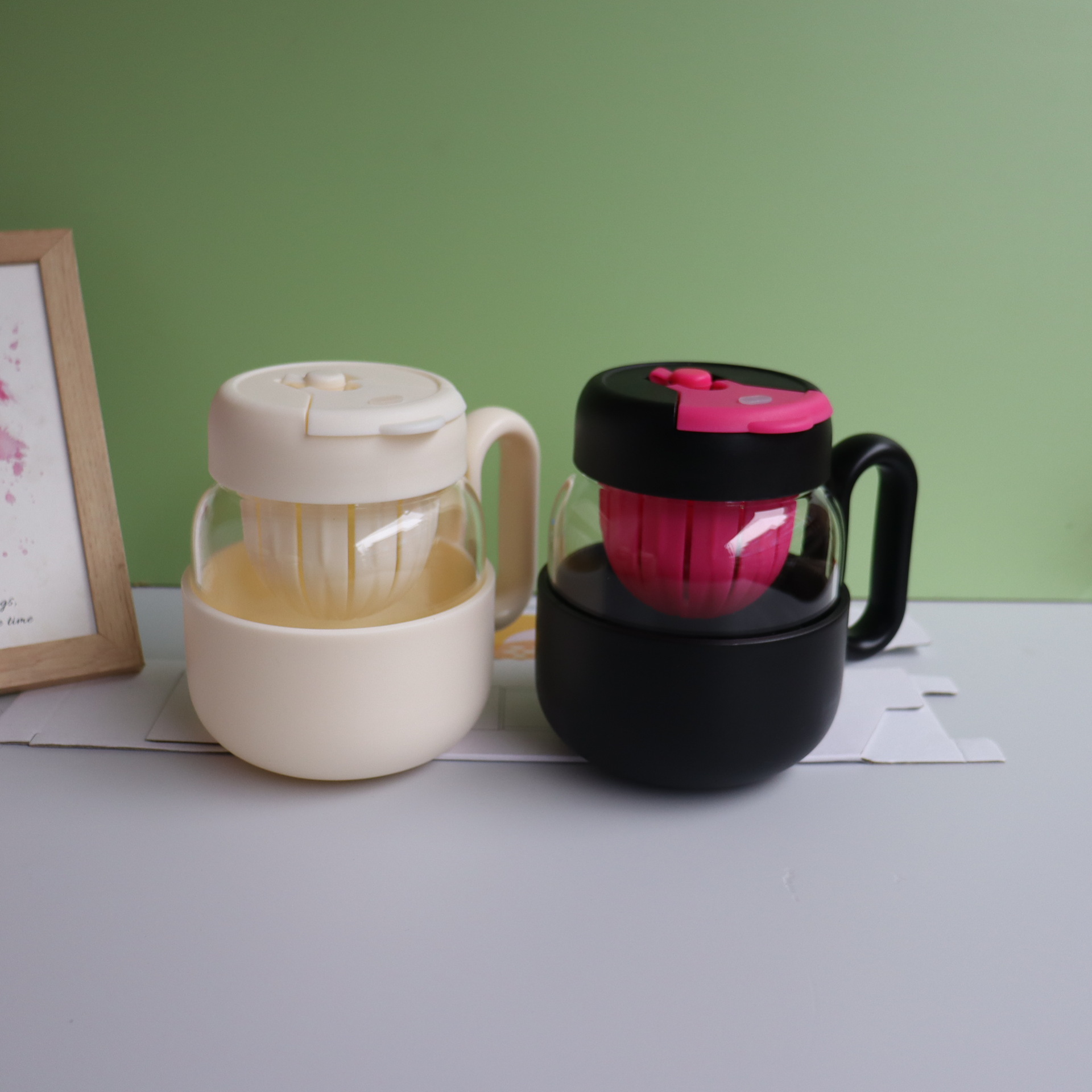 玻璃水杯女新款2024高颜值办公室茶水分离泡茶杯大容量双饮大肚杯 投诉