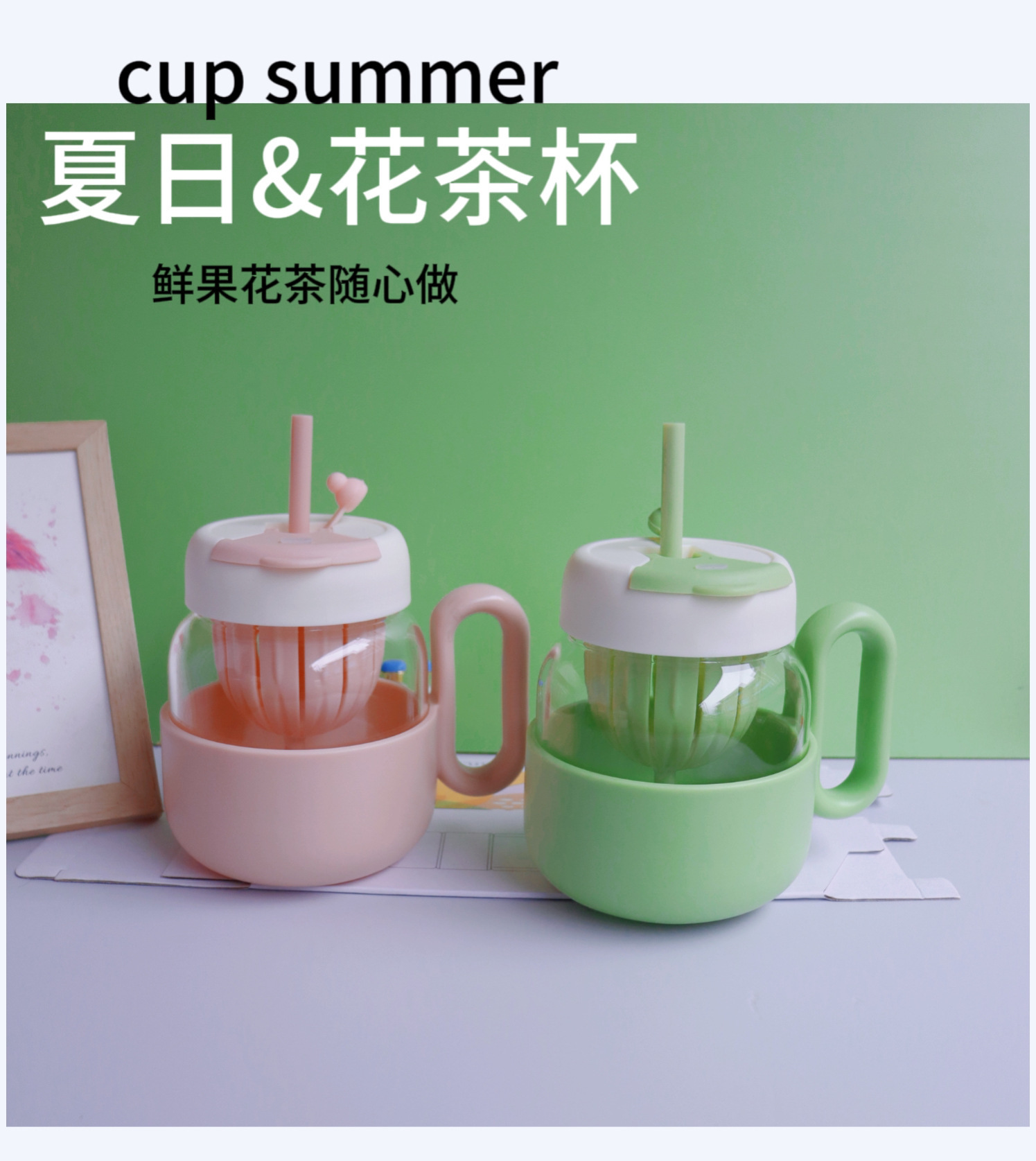 玻璃水杯女新款2024高颜值办公室茶水分离泡茶杯大容量双饮大肚杯