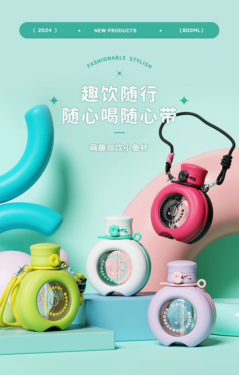 女生塑料水杯高颜值夏季儿童带锁扣大容量水壶吸管杯子防摔大肚杯