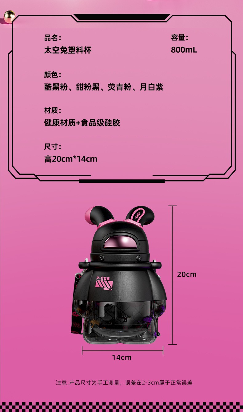 酷潮太空兔儿童水杯女生夏季塑料水壶高颜值可爱大容量带吸管杯子 投诉
