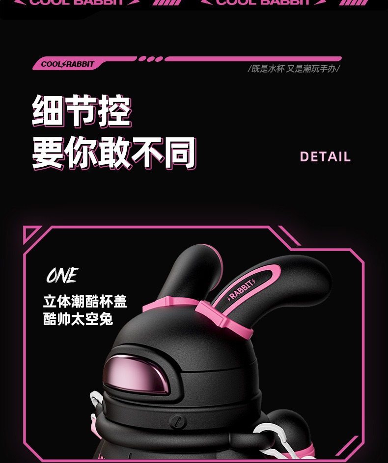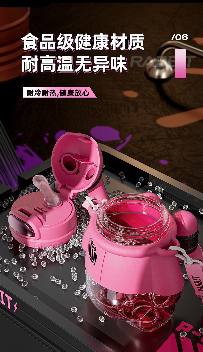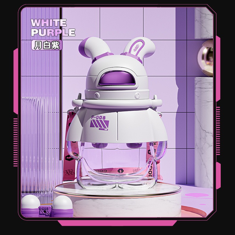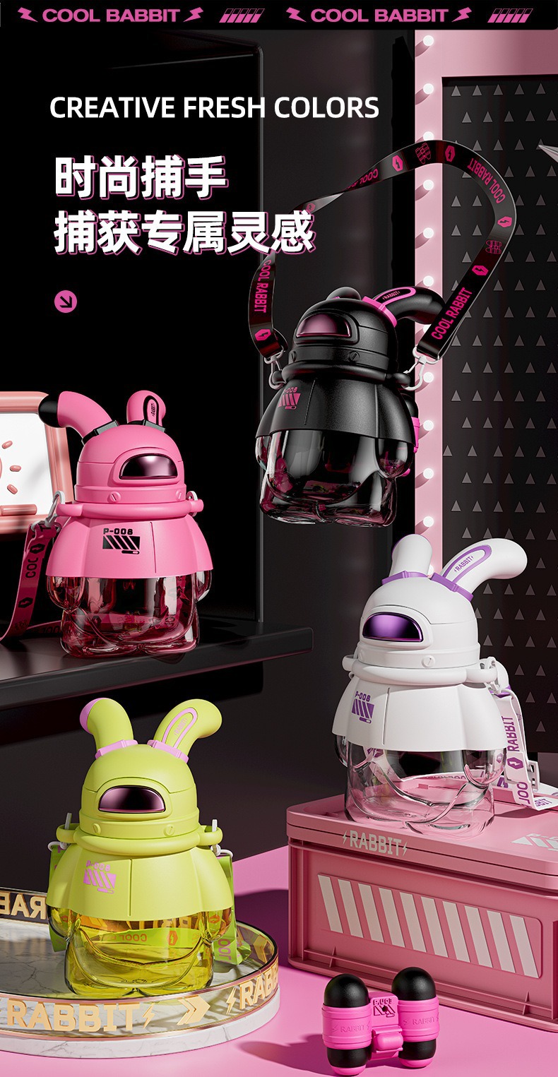 酷潮太空兔儿童水杯女生夏季塑料水壶高颜值可爱大容量带吸管杯子