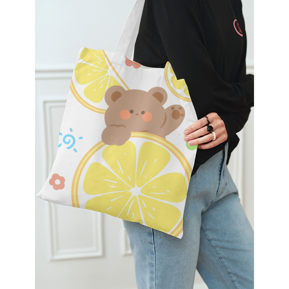可爱熊猫柠檬熊简约帆布包女单肩中国风大容量拉链帆布手提购物袋