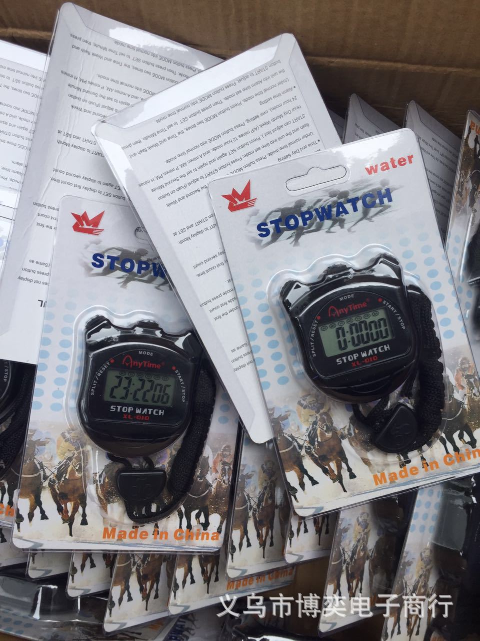 具有秒表功能,一组计时,时间功能, 日期功能,闹钟功能,星期功能等多功能,使用纽扣电池一粒AG13纽扣电池(表里面有一粒),款式大方,包装精美. 全新一级ABS料,插卡包装好的,详细的说明在插卡上就有。
