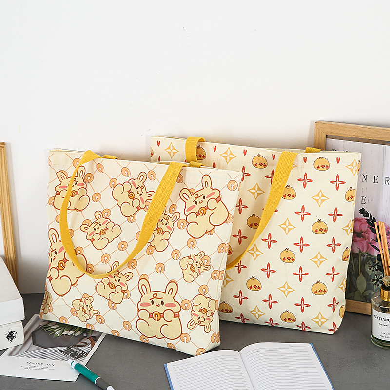 新款原创卡通学生女大容量ins文艺资料袋托特百搭单肩帆布袋 English | 投诉