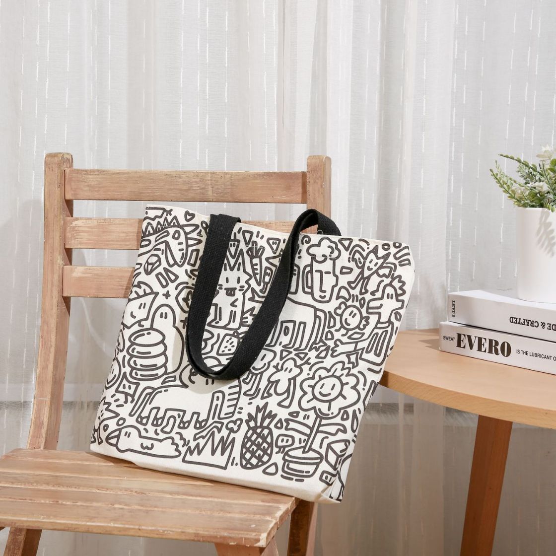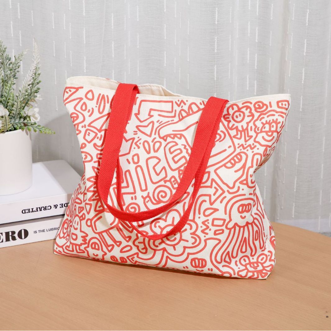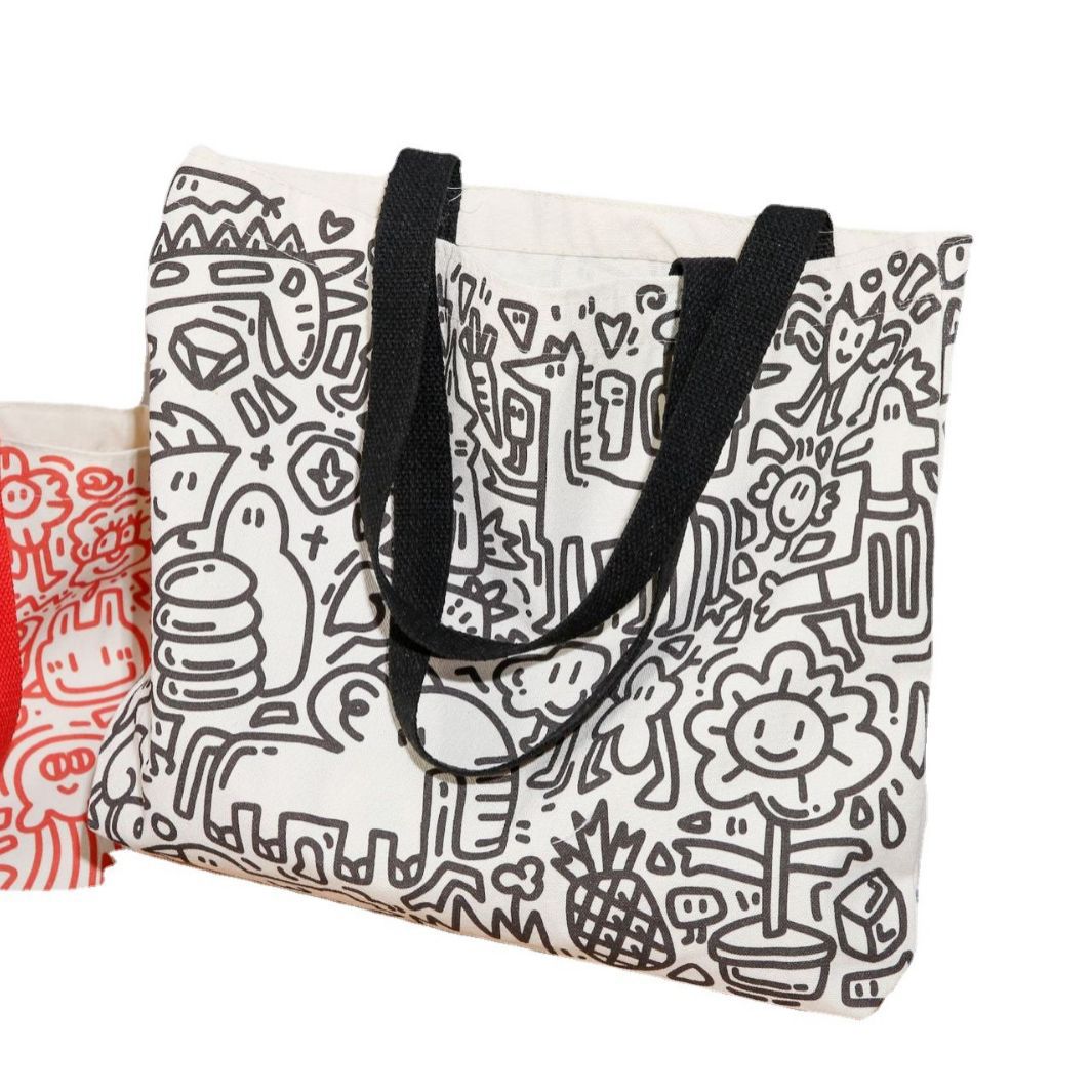 新款原创托特包大容量学生帆布包布袋学生涂鸦休闲购物袋休闲